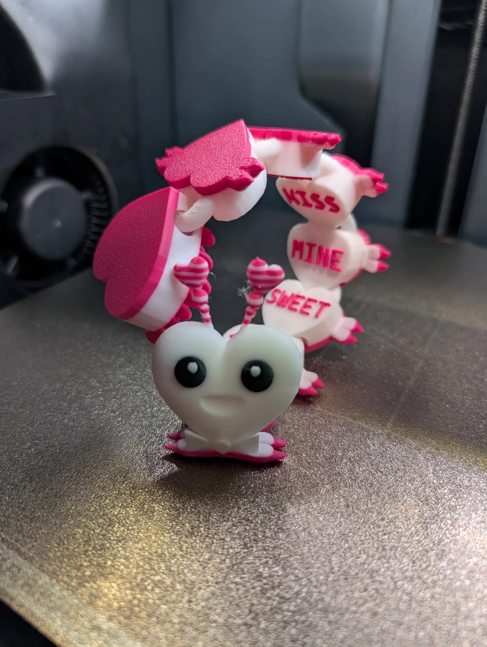 Mẫu flexi Valentines heart candy creature dễ thương để chơi dịp Valentine. Có thể tùy chỉnh chữ và màu, kèm profile in single color để giảm purge waste. In không cần supports, phù hợp làm toy/fidget.