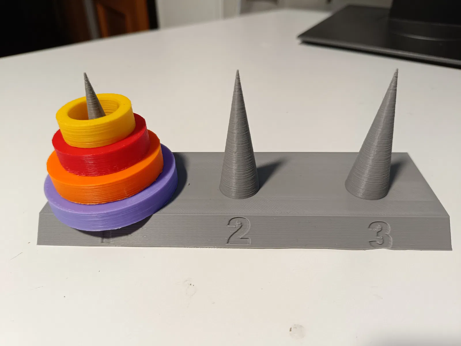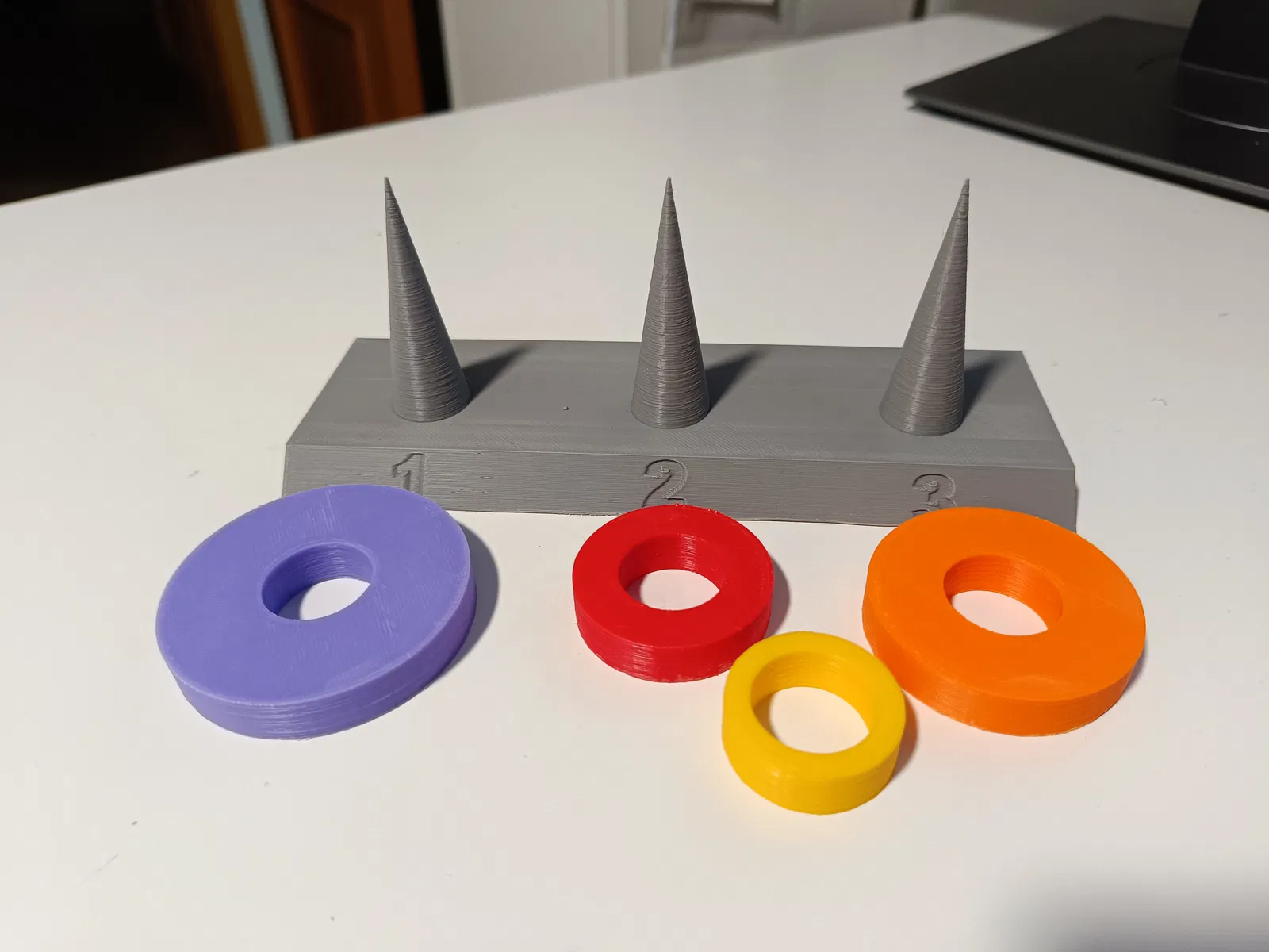 Mẫu HANOI TOWER (puzzle) - Logical Game theo kiểu Tháp Hà Nội truyền thống, phối màu hiện đại giúp dễ phân biệt từng đĩa. In PLA layer 0.2mm cho bề mặt mịn. Vừa học vừa chơi, rèn tư duy logic và giải đố.