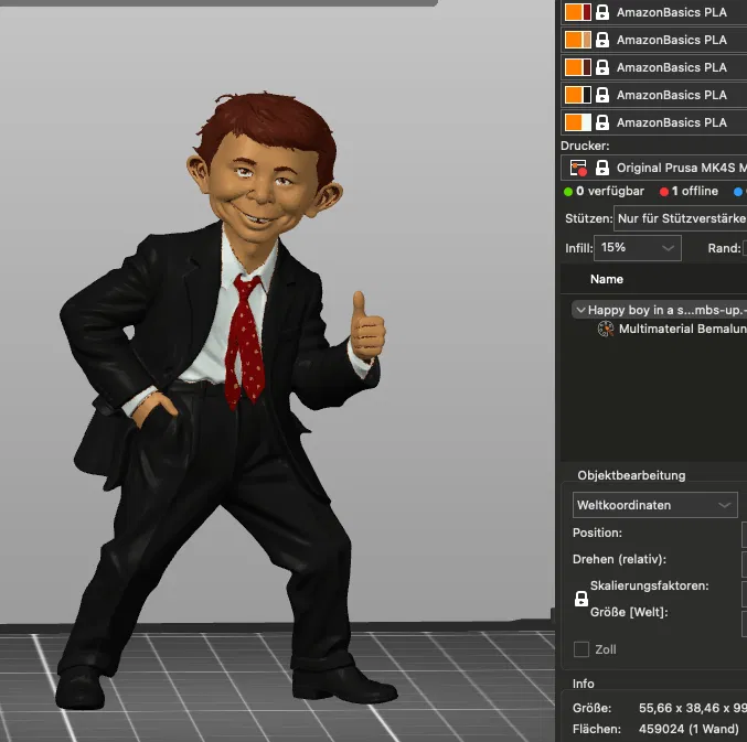 Mẫu tượng (figurine) Alfred E Neuman đứng trên thẻ MAD, phù hợp để trưng bày hoặc in 3D làm mô hình sưu tầm. Thiết kế tập trung vào dáng đứng và phần đế thẻ MAD đúng chủ đề.