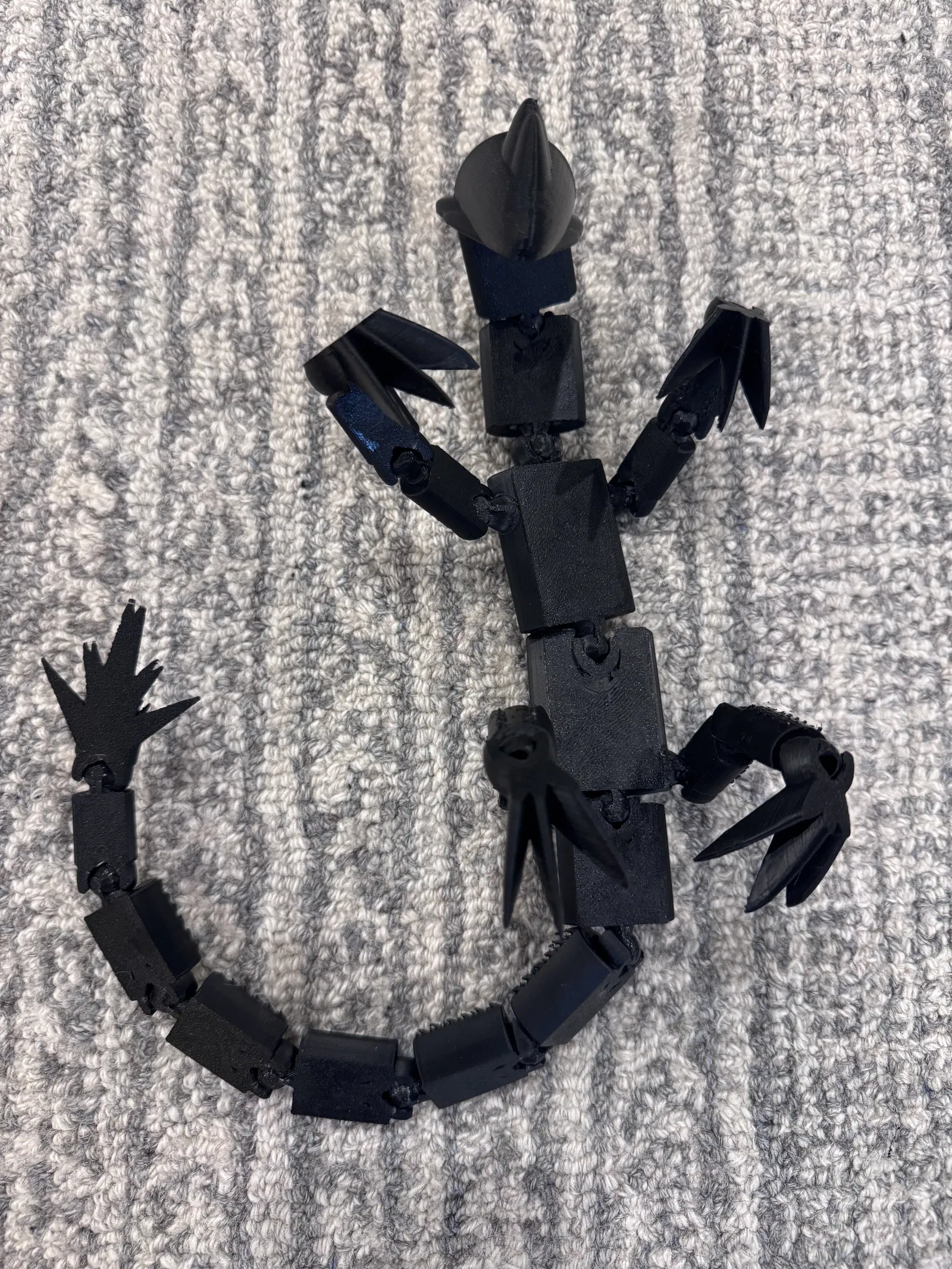 Con thằn lằn này có thể hơi khó lắp — nếu cần thì ngâm/nhúng các khớp trong nước nóng để làm mềm, hoặc cầm bằng khăn/khăn giấy nếu lắp bị đau do gai đâm vào da