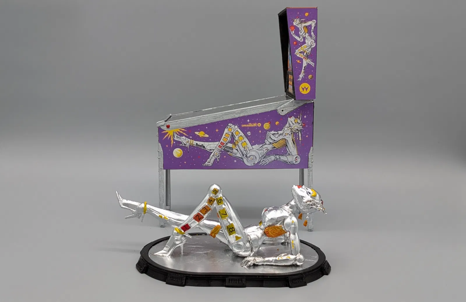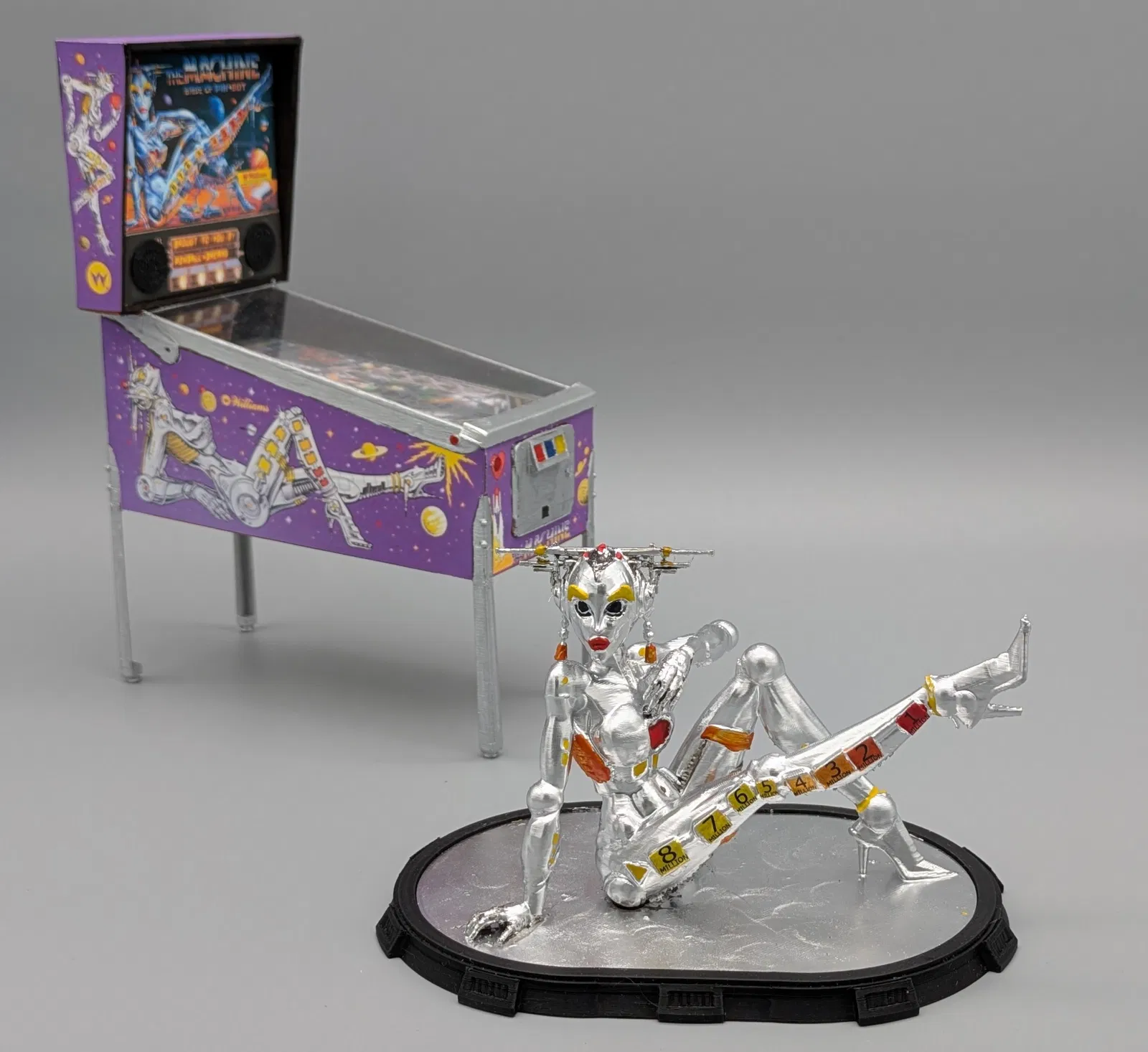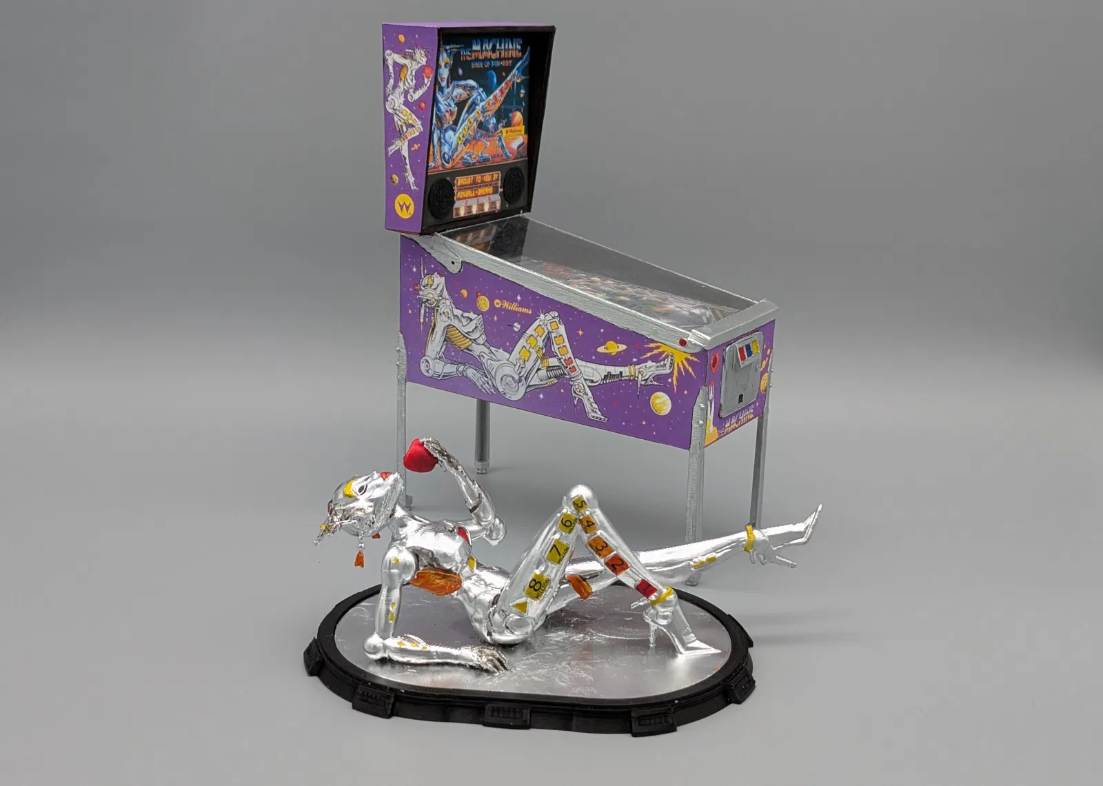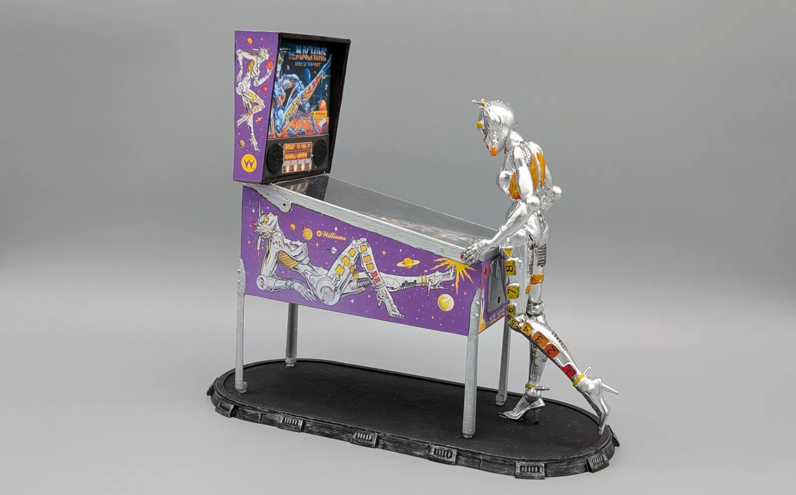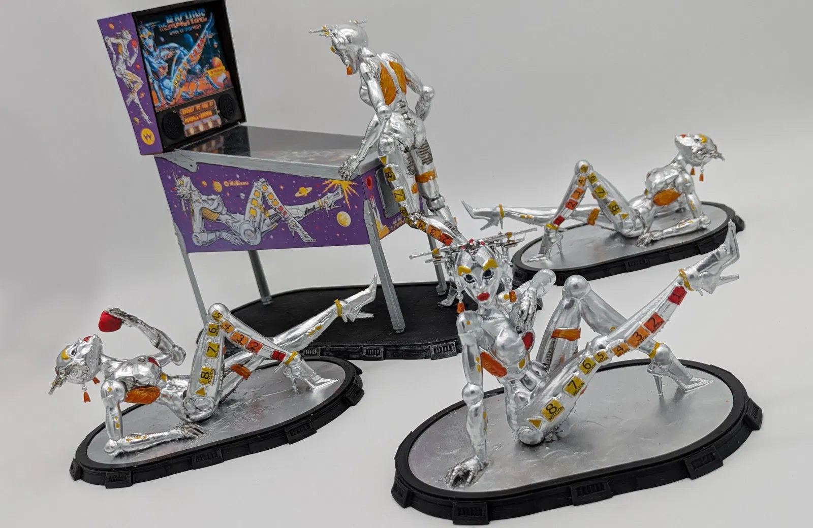 Tượng Bride of Pinbot. Gồm 4 tư thế khác nhau của linh vật trên máy pinball “The Machine - Bride of Pinbot”.