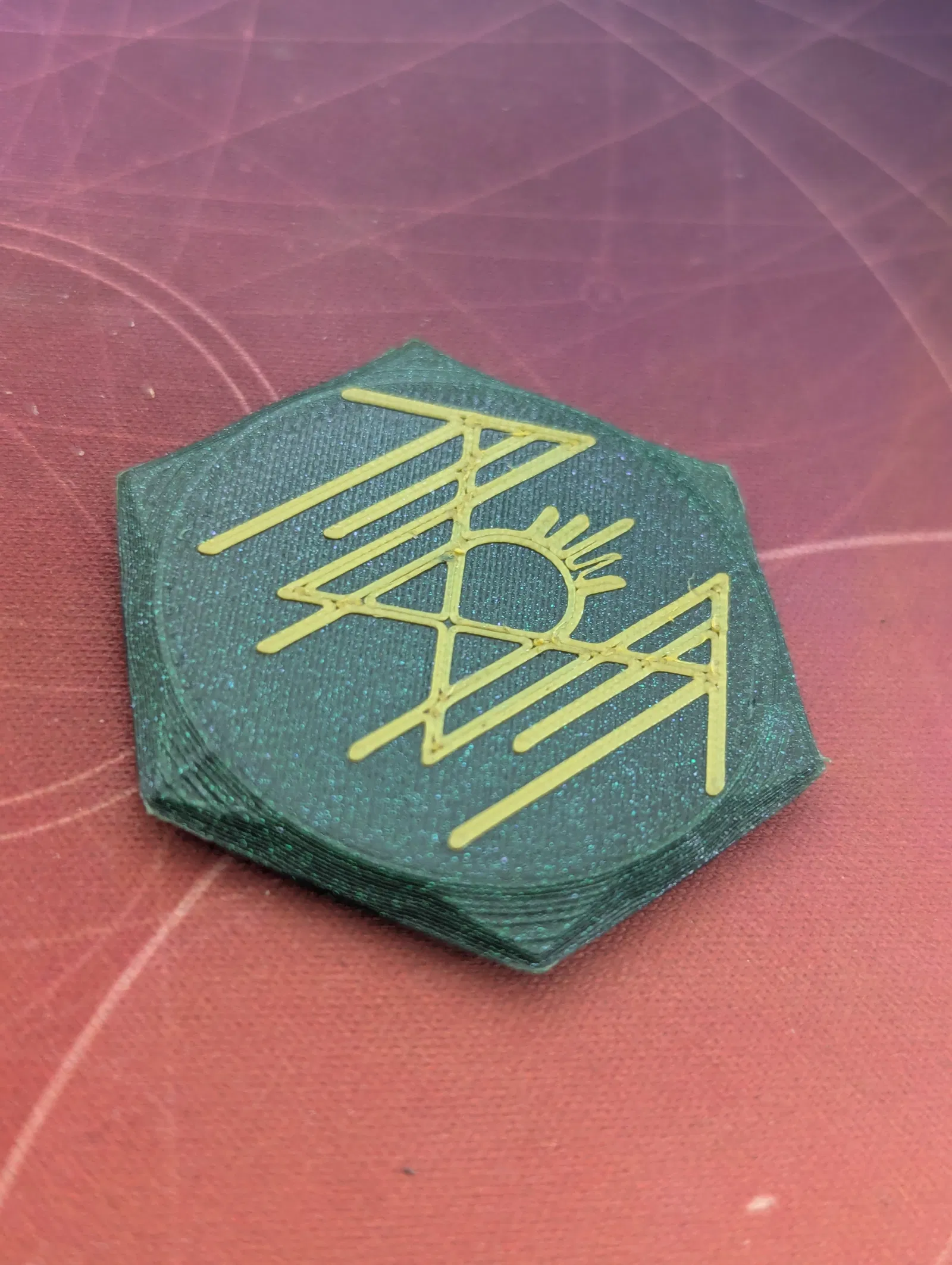 Token/coin chủ đề Sleep Token có hốc để gắn NFC Sticker tag, dễ thêm tag bằng cách đặt lệnh pause trong slicer. Gồm 2 bản 1 mặt và 2 mặt, có thể in như token thường không cần NFC.