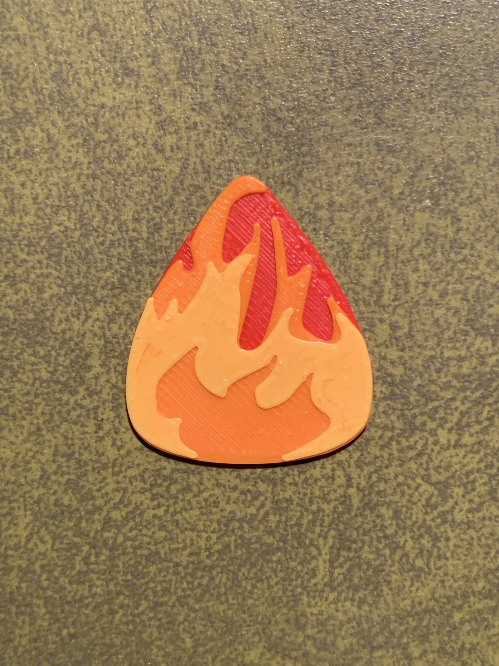 Fire Guitar Pick – miếng gảy guitar phong cách ngọn lửa với hiệu ứng in nhiều màu theo lớp. Chỉ cần đổi filament sau layer 2 và 4 để có 3 màu. Đầu pick dày khoảng 0.8 mm (tính cả lớp cam) và hơi mềm hơn do lớp cam không phủ hết.