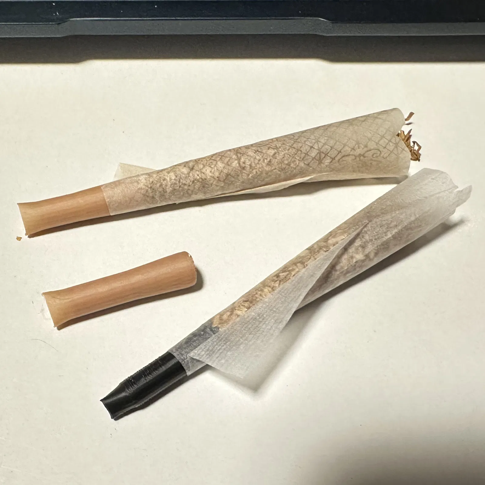 Biến thể 1 chỉ thu nhỏ (taper) ở phía hướng về miệng để filter không bị rơi ra. Biến thể 2 có thêm một đầu ngậm (mouthpiece) nhỏ.