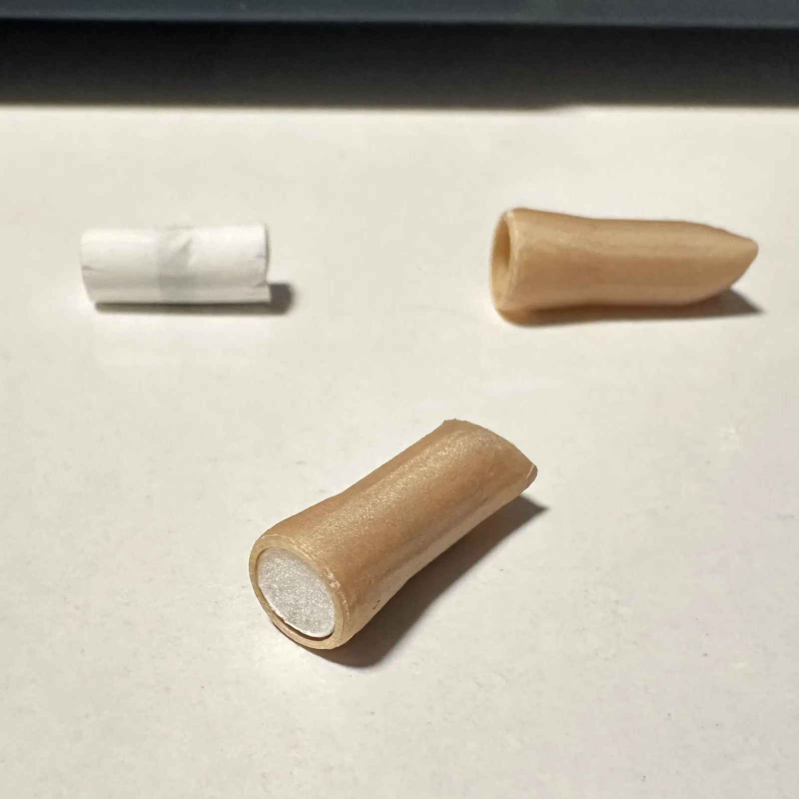 Nếu bạn cũng giống mình, chắc cũng hơi khó chịu vì cái filter bạn thích cho điếu thảo mộc dạng cone lại là loại thẳng, thành ra lâu lâu bị tuột ra, tệ nhất là còn để lại ít “rác”/vương vãi. Nên mình mới thiết kế mấy cái ống bọc nhỏ dạng côn này để bạn cắm filter thẳng vào. Mình làm nhiều size khác nhau và mỗi size có 2 biến thể. Màu thì bạn tự chọn.