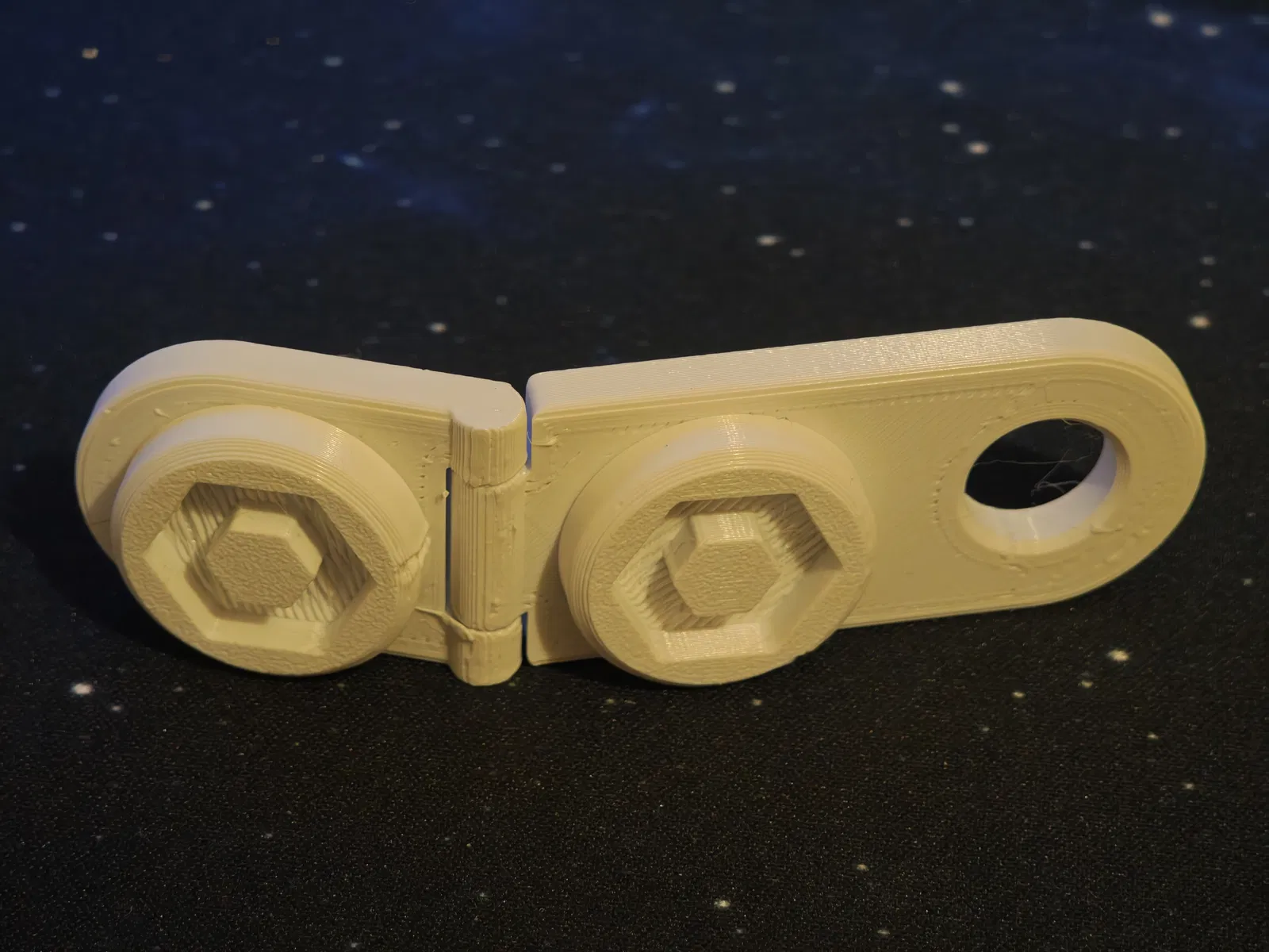 In bằng PLA, layer 0.2mm, không cần supports. Bản lề print-in-place có dung sai khá sát nhưng nhìn chung vẫn ổn với đa số máy in, cân bằng giữa bị kẹt (binding) và quá lỏng lẻo.