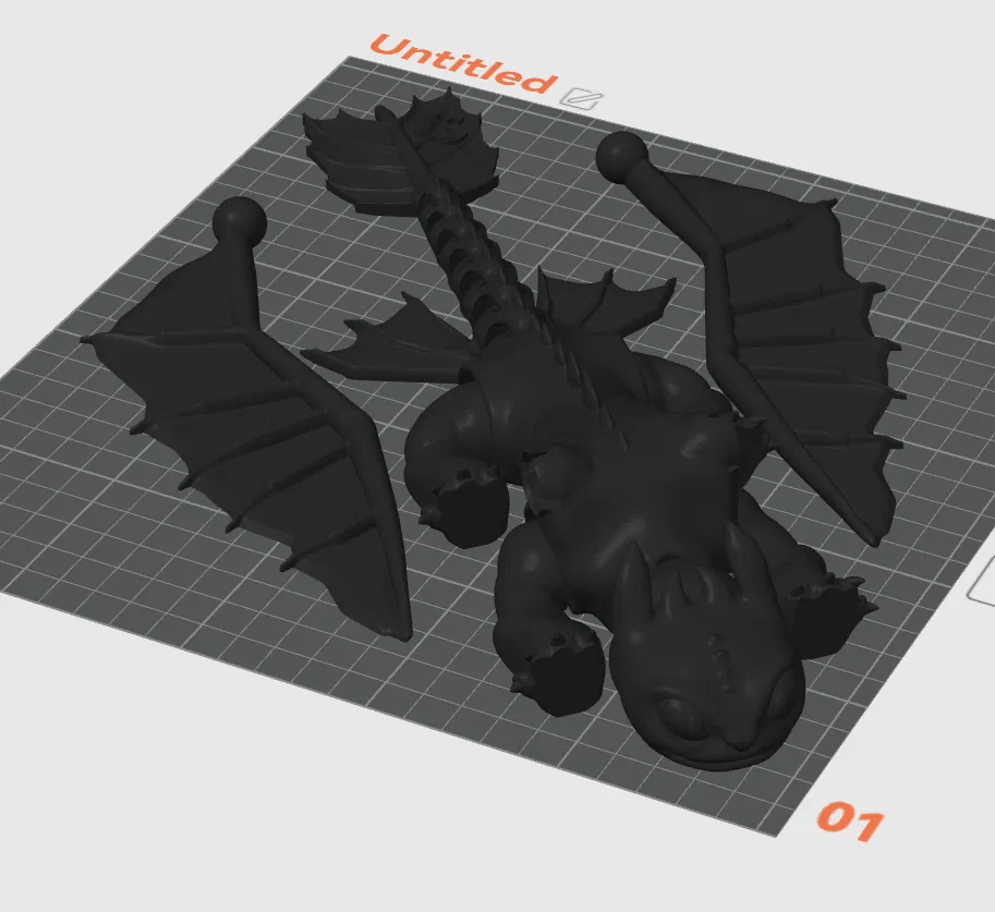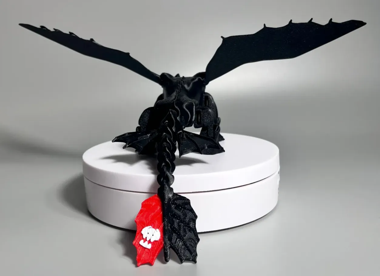 Mẫu Rồng Toothless (STL remix) với cánh xoay linh hoạt. Bạn có thể in gọn trong một file duy nhất trên bàn in kích thước 250 x 250, tiện để in nguyên khối và lắp ráp tối giản.