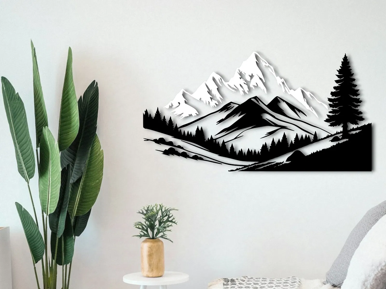 Mẫu này là một khung cảnh núi non gọn gàng, với các lớp màu đơn giản. Đây là món trang trí nhẹ nhàng, tinh tế, mang lại cảm giác yên bình của những dãy núi mùa đông cho bất kỳ không gian nào.