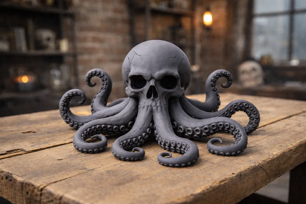 Octoskull là mẫu 3D kết hợp hình đầu lâu và bạch tuộc, nhìn vừa ngầu vừa lạ mắt. Khi in, nhớ bật support để các chi tiết nhô ra được đỡ tốt và ra form đẹp.