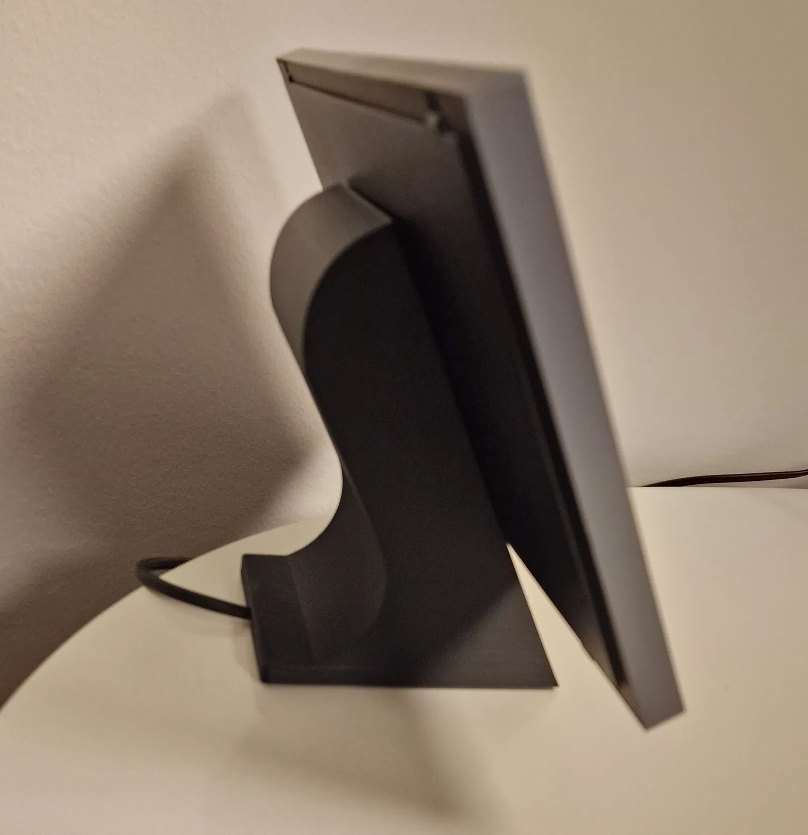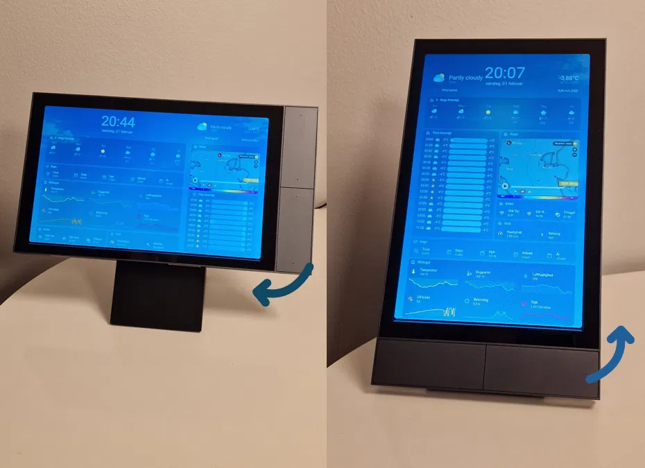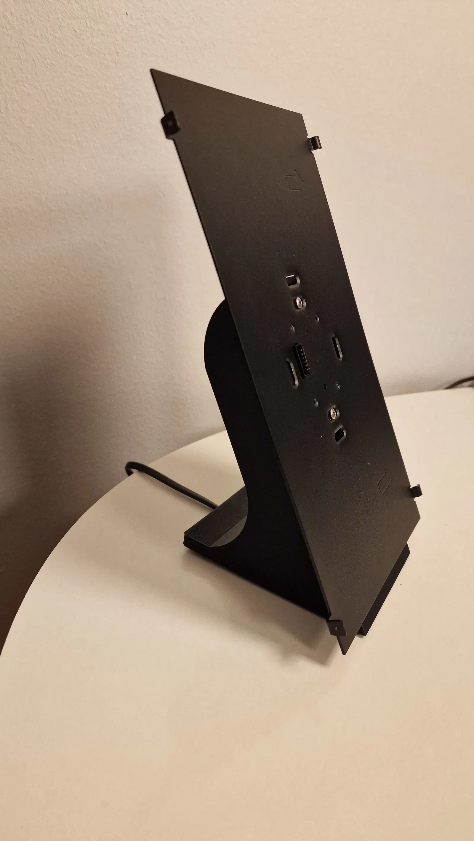 Stand xoay cho Shelly Wall Display XL, cho phép lật màn hình 90° từ ngang (horizontal) sang dọc (vertical). Thiết kế gồm 3 phần: stand chính, attachment ring và strain relief (tùy chọn). Khuyến nghị in có supports.