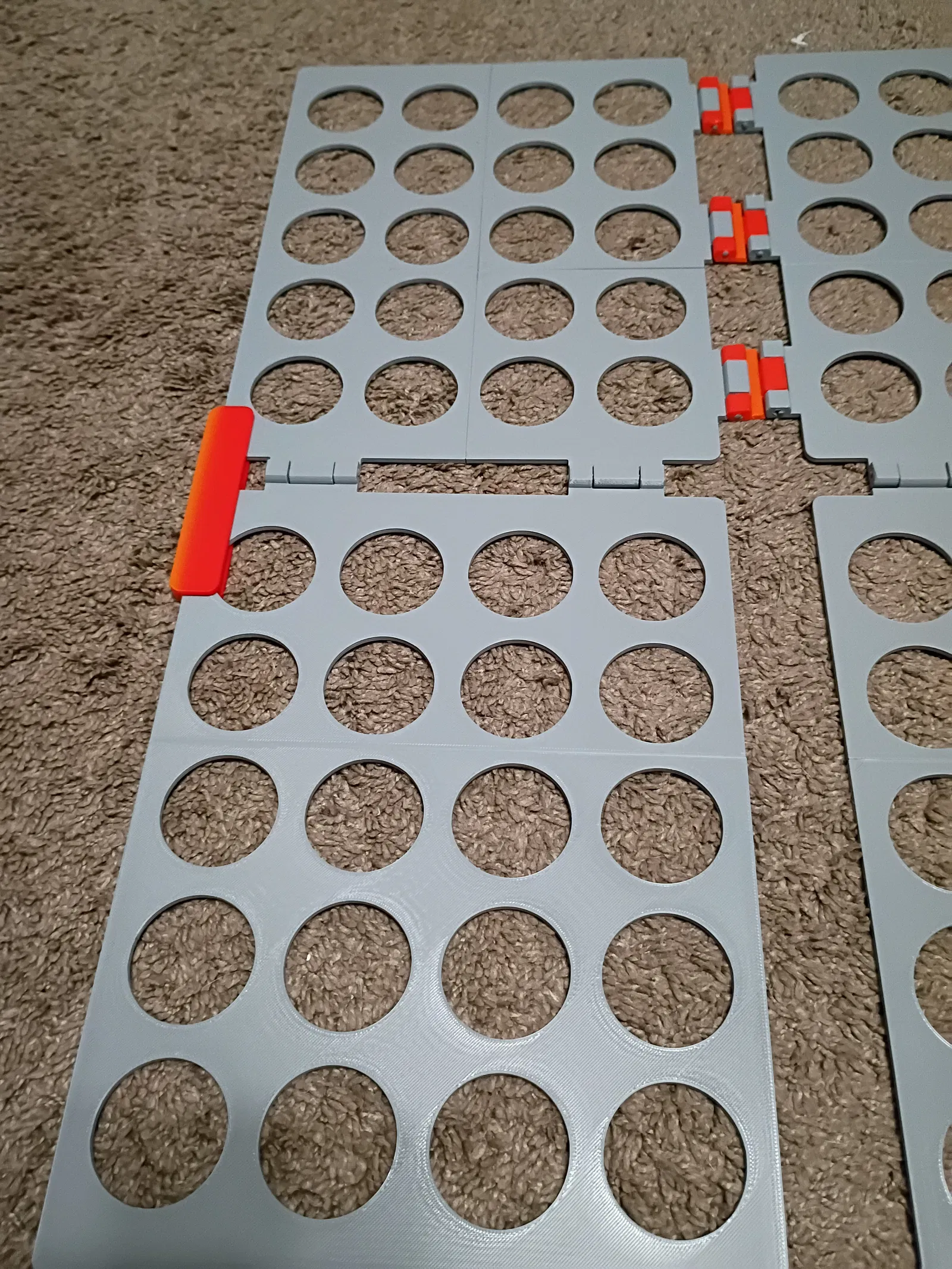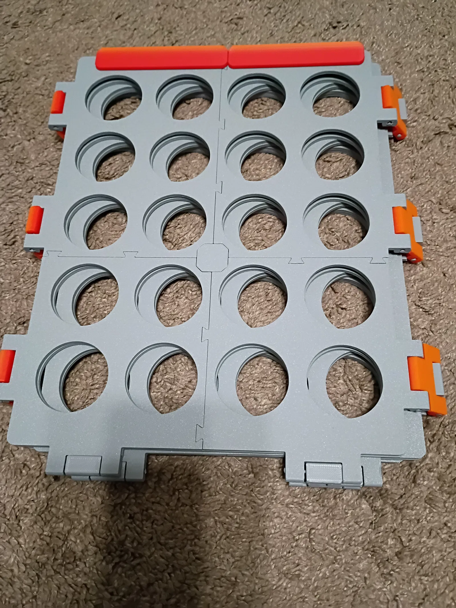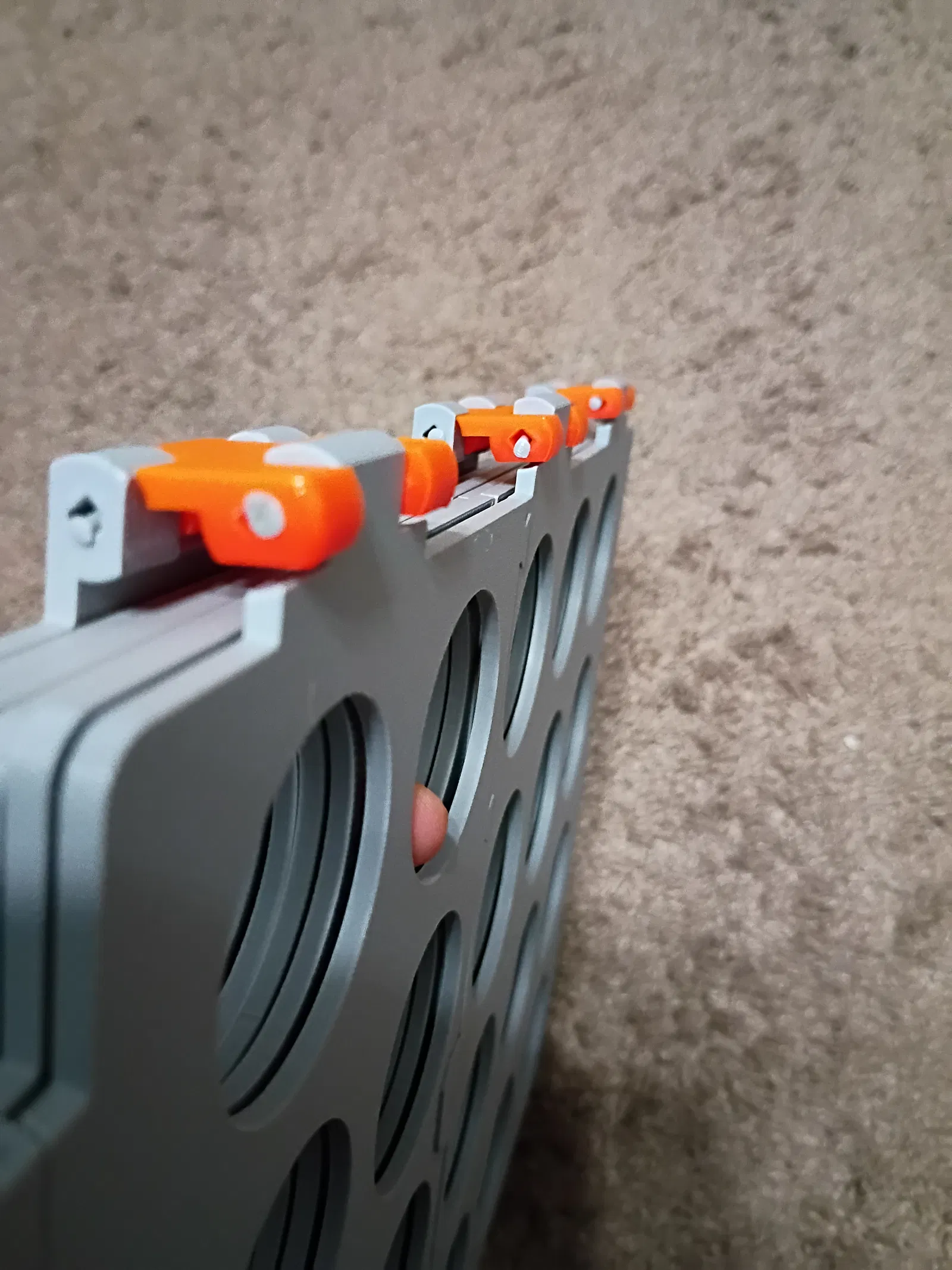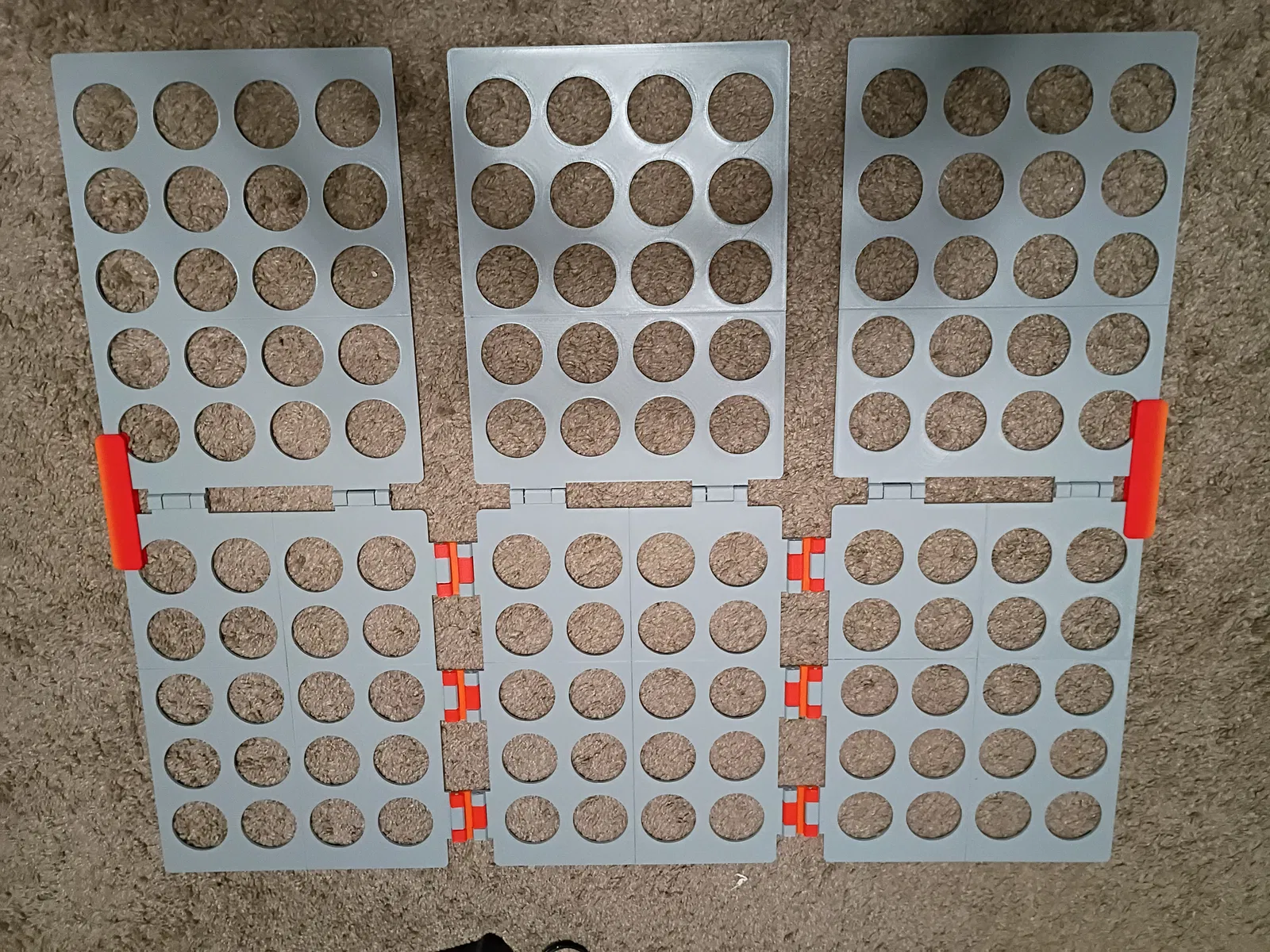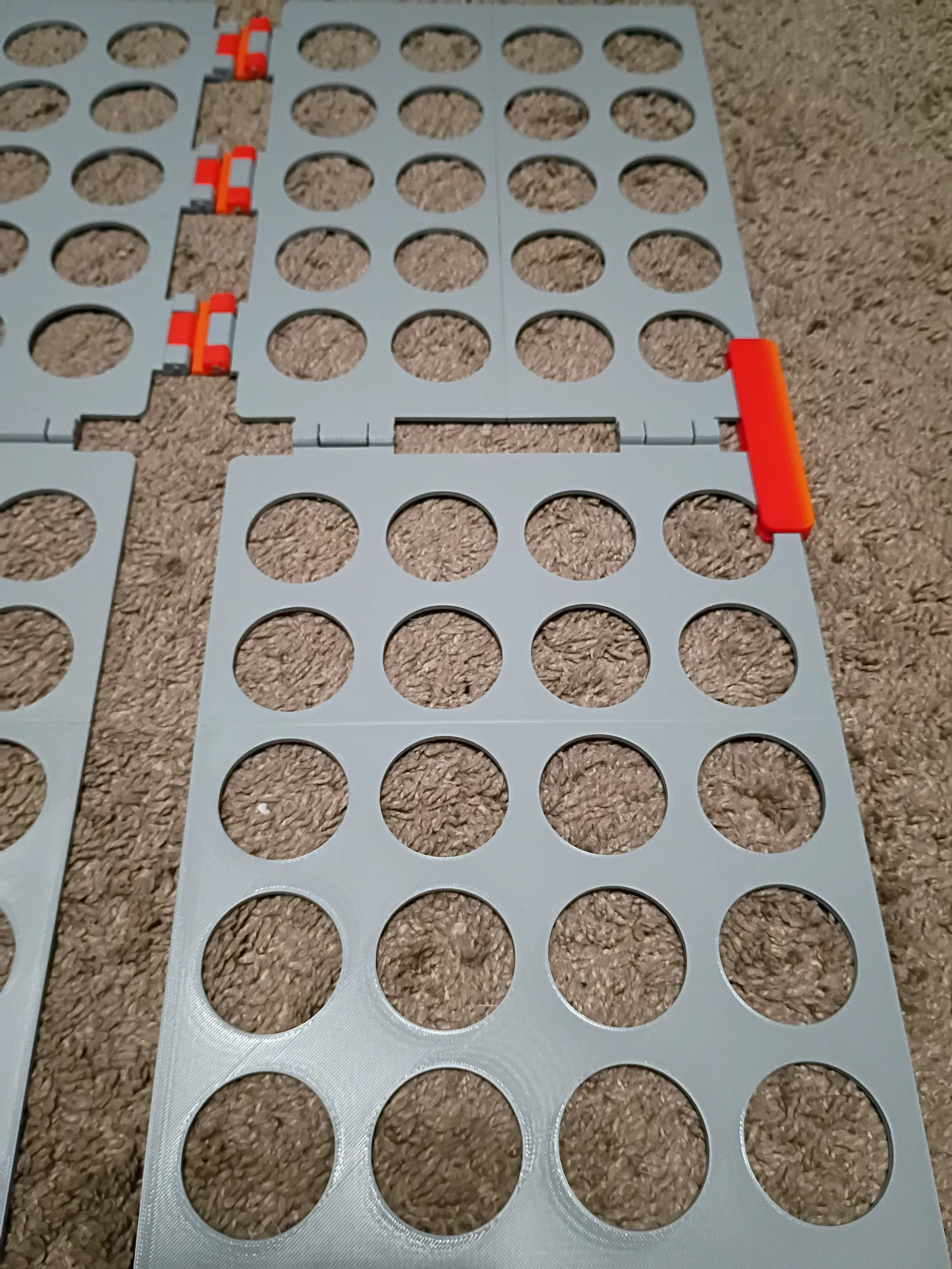 Mình tách các tấm panel ra để in vừa khổ print bed 220x220x220. Các tấm phía dưới được chẻ làm đôi và nối bằng khớp dovetail; các tấm phía trên được tách thành 4 miếng với dovetail và có thêm một insert để ghép cả 4 miếng lại. In xong thì dùng keo siêu dính (superglue) dán các dovetail và insert để cố định. Bạn cũng sẽ cần hinges và locks.