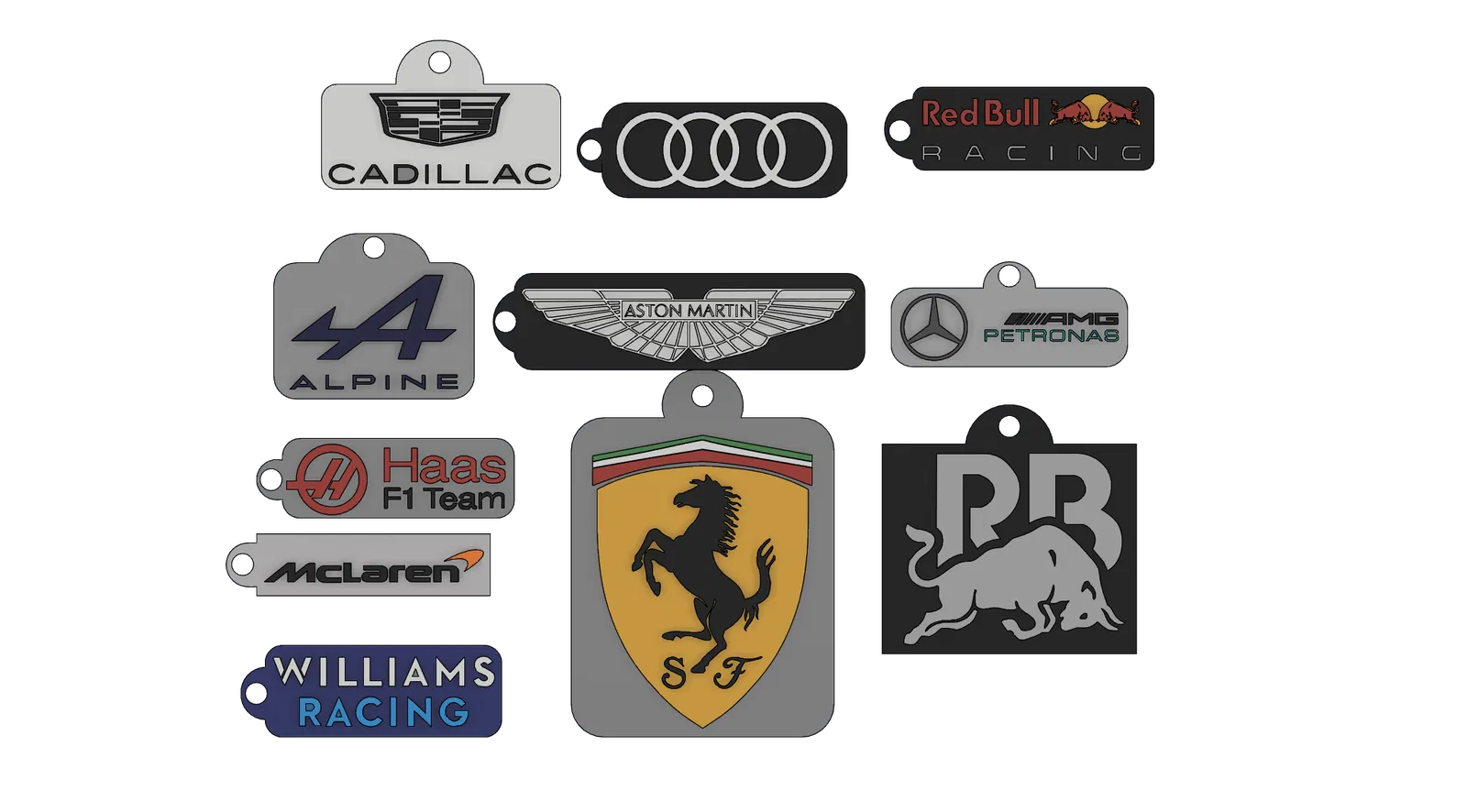 Bộ mẫu móc khóa in 3D với logo các đội Formula One (F1) mùa giải 2026. Phù hợp để in PLA, làm quà tặng hoặc phụ kiện gắn chìa khóa; thiết kế gọn nhẹ, dễ mang theo.