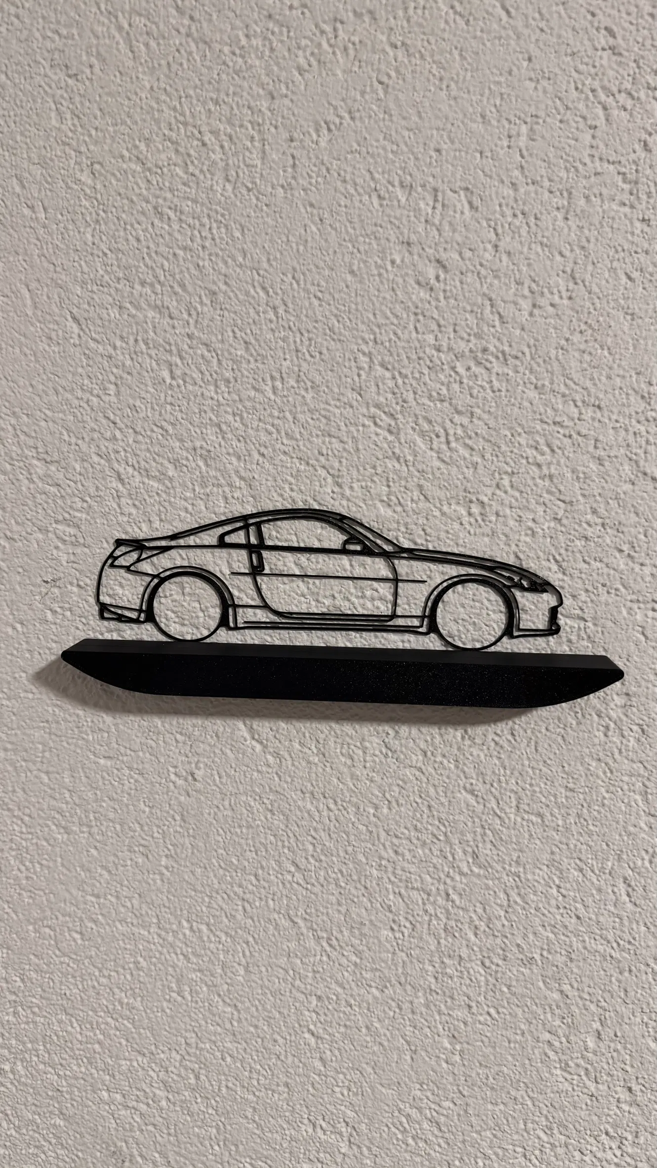 Mẫu wall art Nissan 350z dạng tranh treo tường, phù hợp để in 3D trang trí góc làm việc hoặc garage. Thiết kế đơn giản, dễ trưng bày và làm quà tặng cho fan xe.