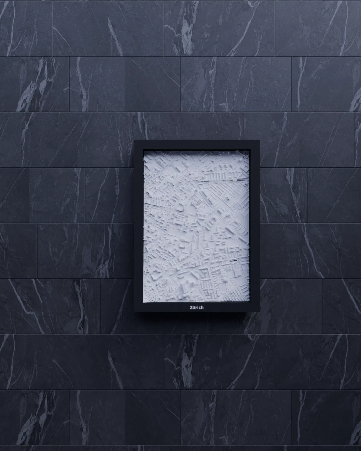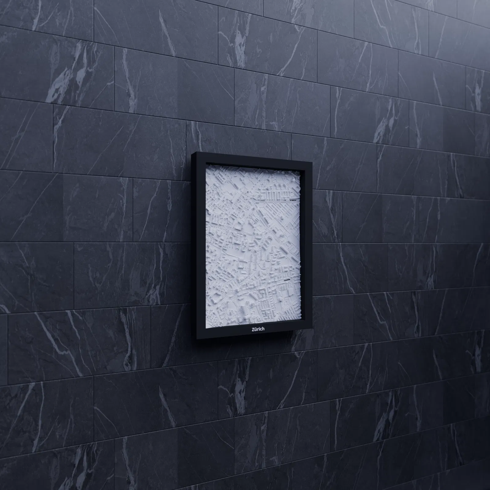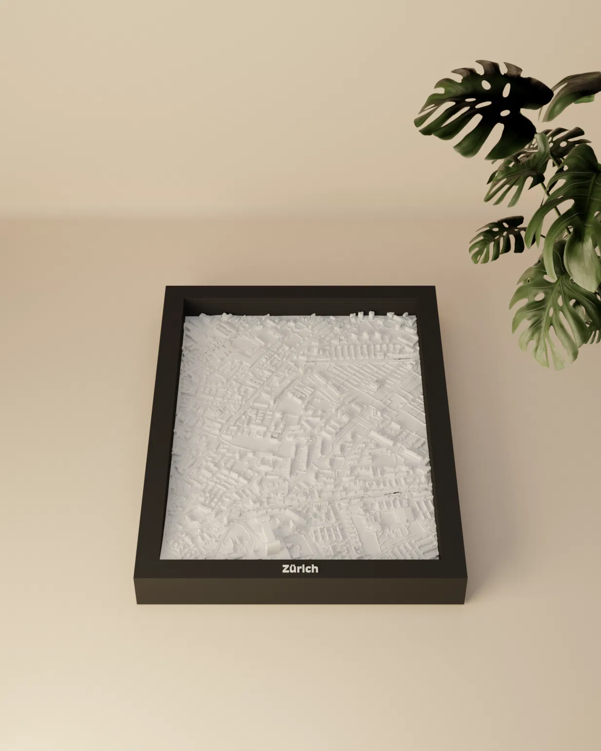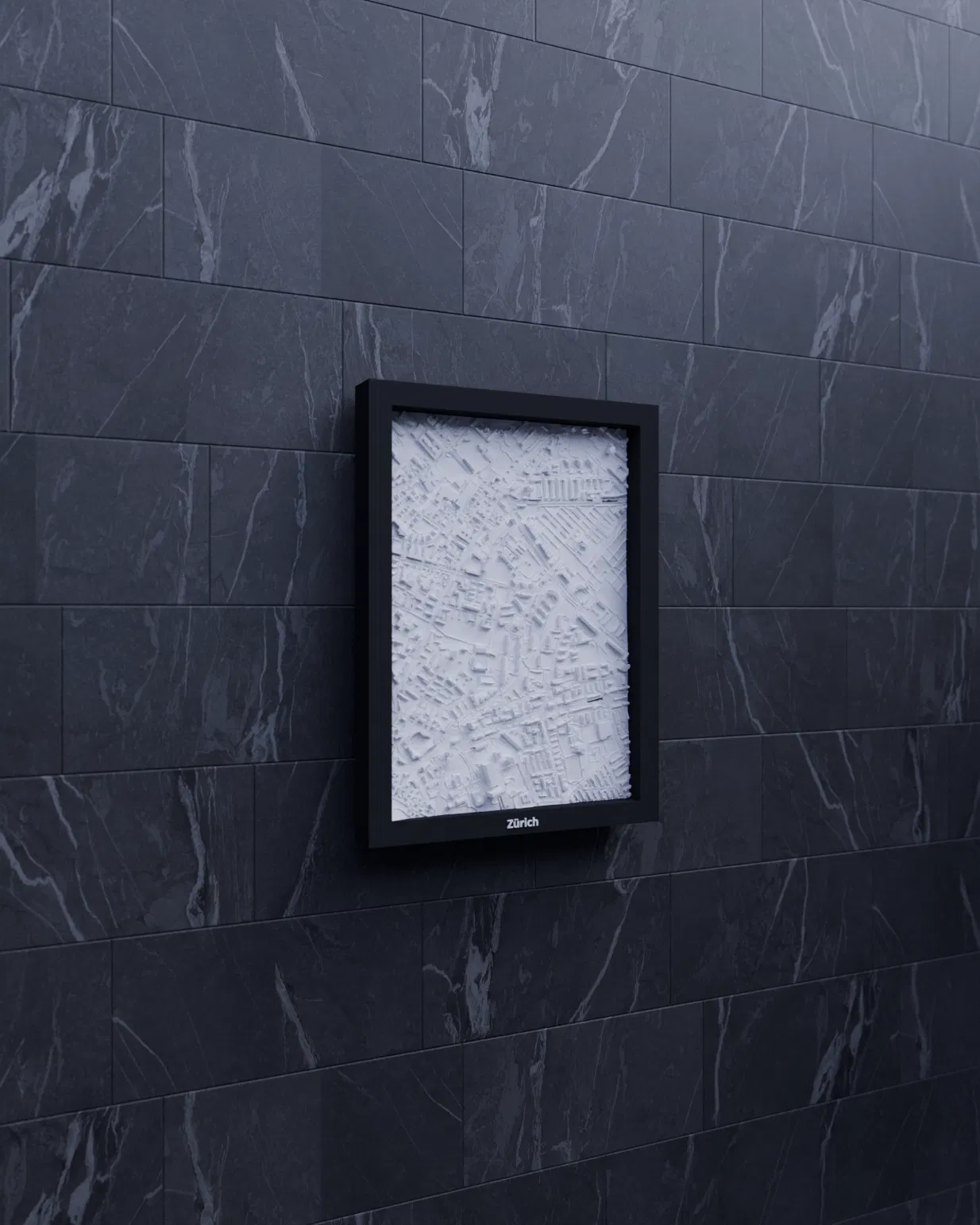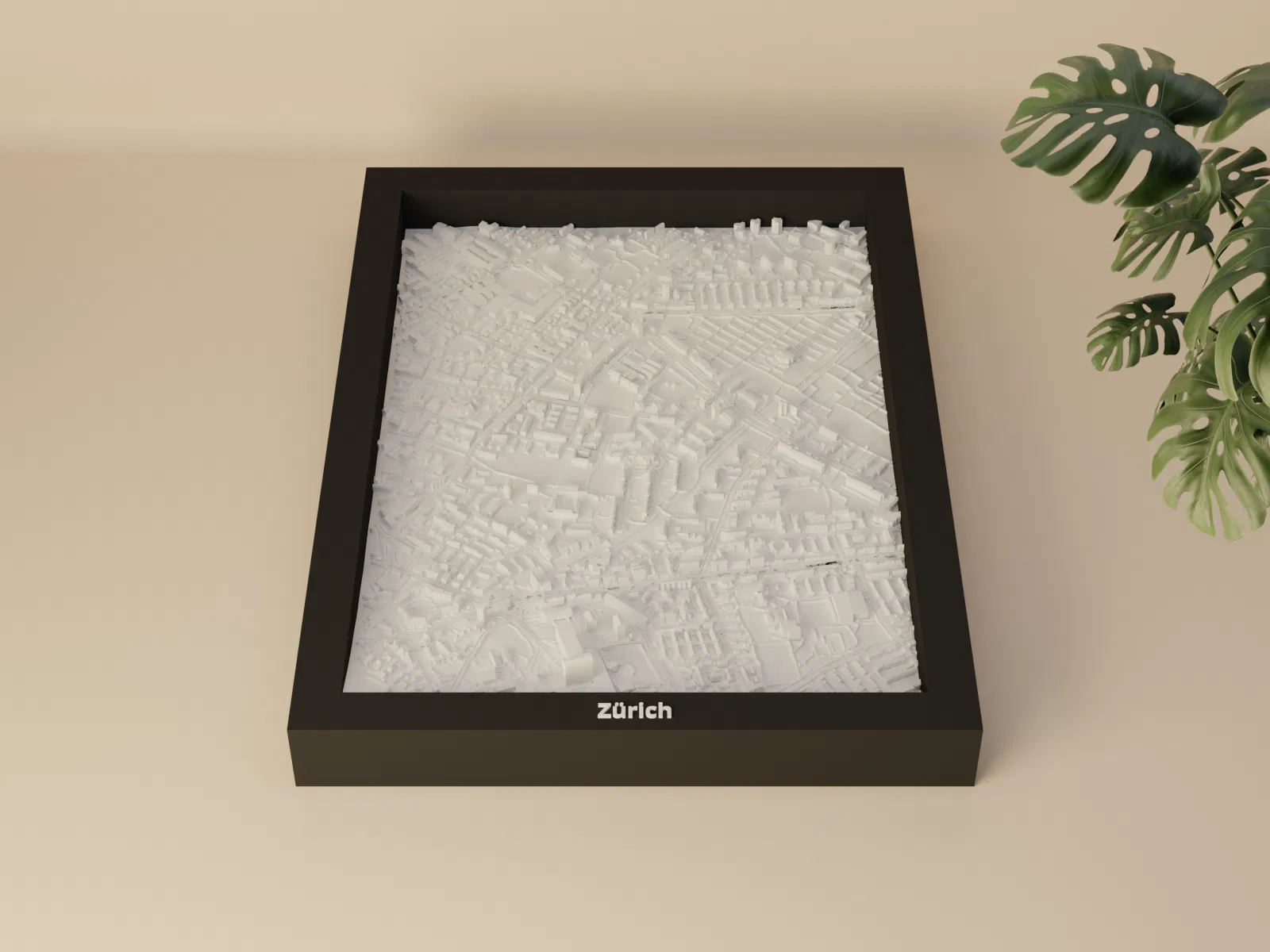 Mô hình địa hình thu nhỏ Zürich (Thụy Sĩ) có thể in 3D, dựng từ dữ liệu địa lý để cho terrain chân thực. Kèm nhiều lựa chọn frame, có lỗ treo; phù hợp trưng bày, học tập hoặc làm quà tặng.