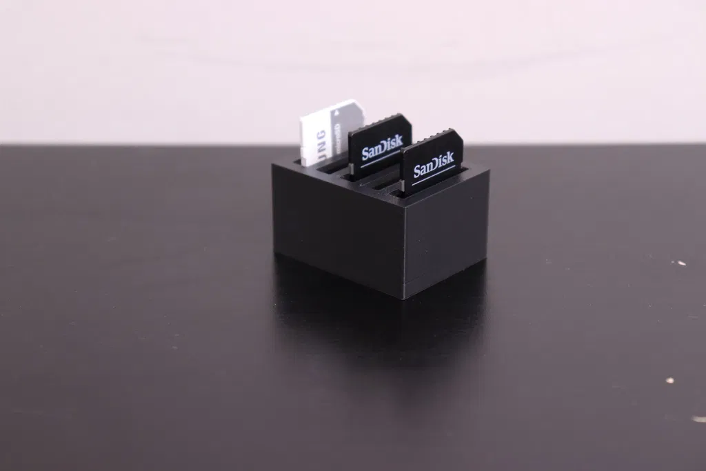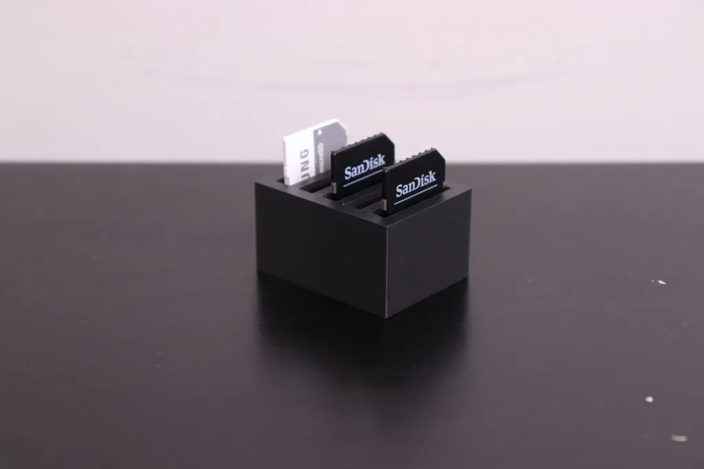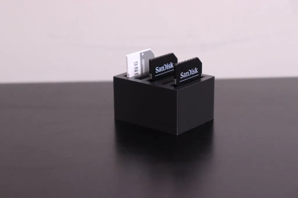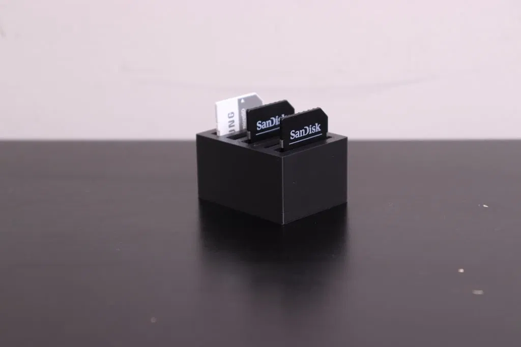 Mẫu SD Card Holder v2 được chỉnh sửa từ phiên bản trước: tối ưu khoảng hở và tăng/điều chỉnh chiều cao để thẻ SD lộ ra nhiều hơn, giúp dễ nhìn và dễ lấy thẻ khi sắp xếp, lưu trữ.