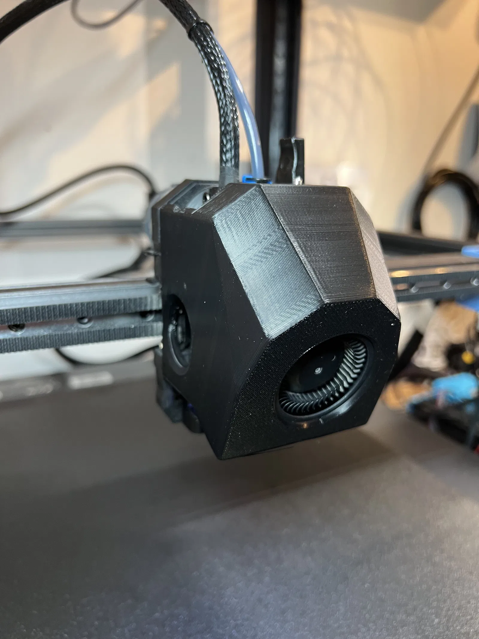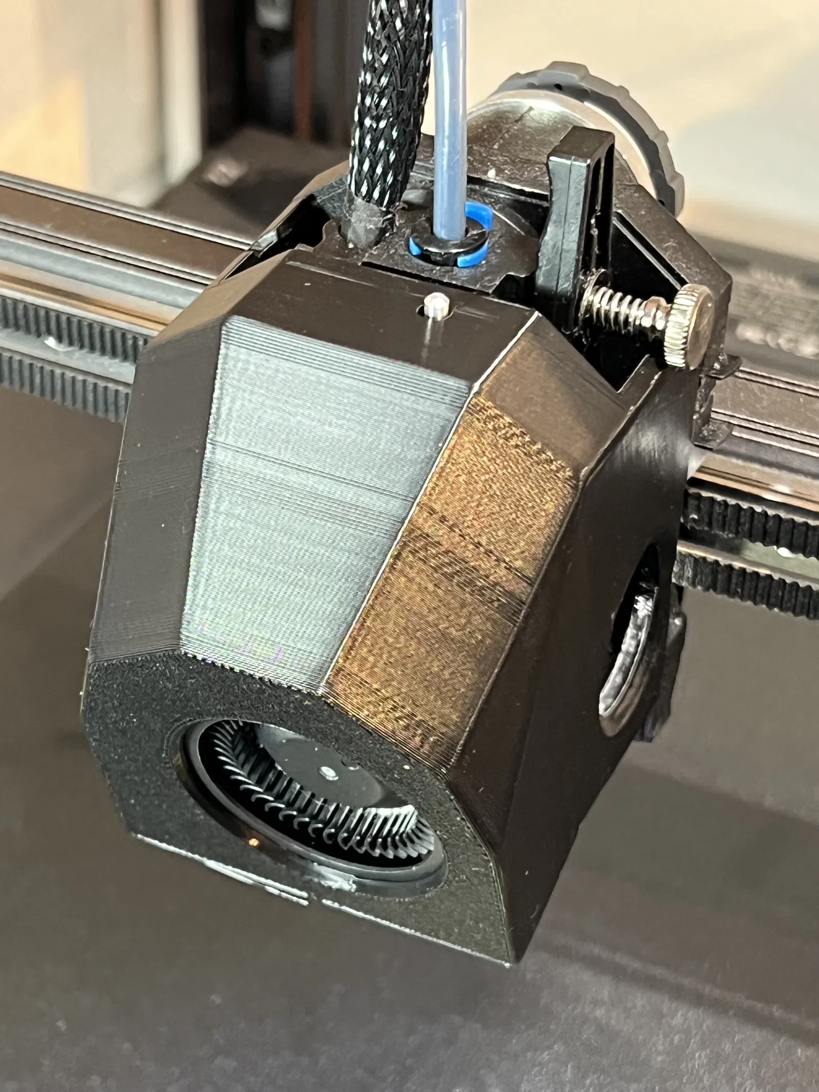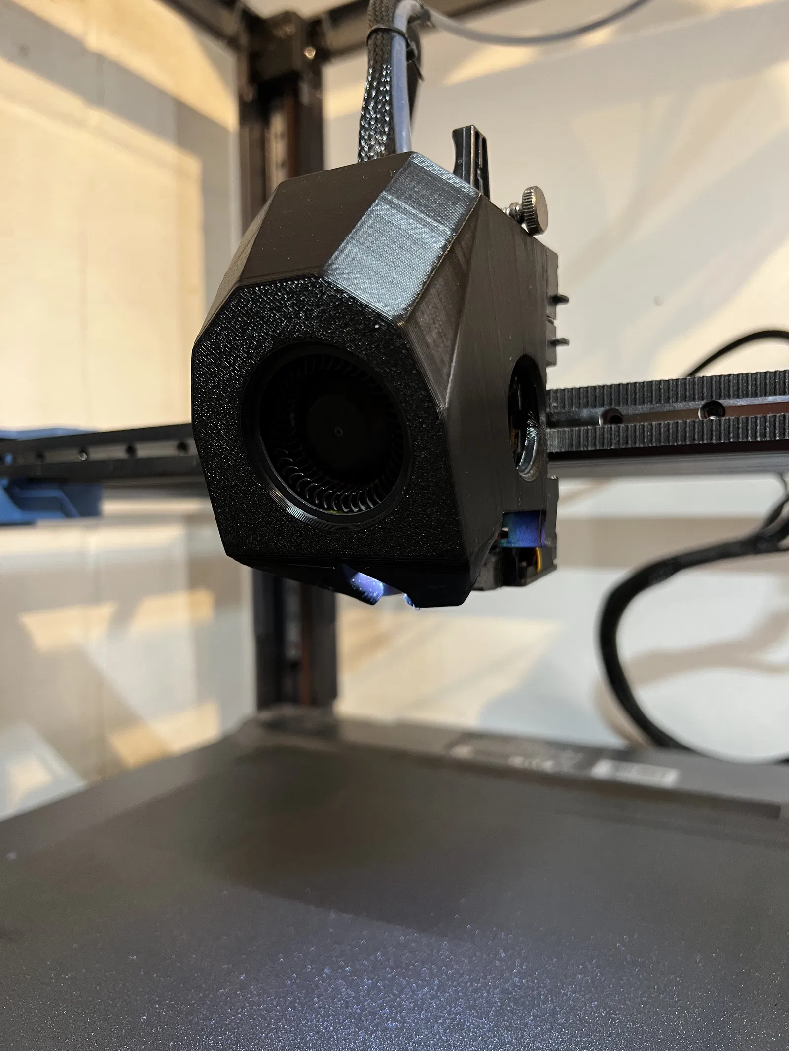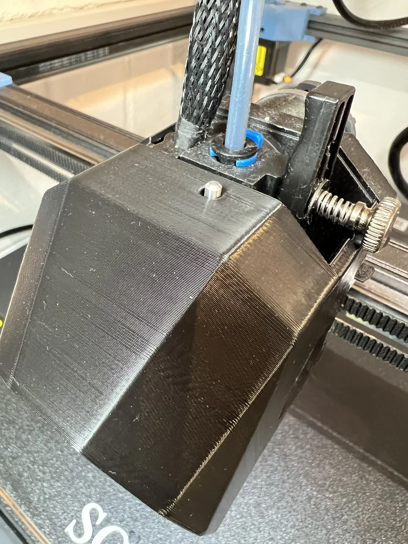 Mình vừa lắp enclosure kit cho SV08 và nhận ra cái shroud này thò ra nhiều quá, nên khi đầu in ở sát phía trước (lúc bắt đầu in) nó bị đụng vào cửa trước. Vì vậy chắc mình sẽ làm một thiết kế mới để tránh bị vậy.