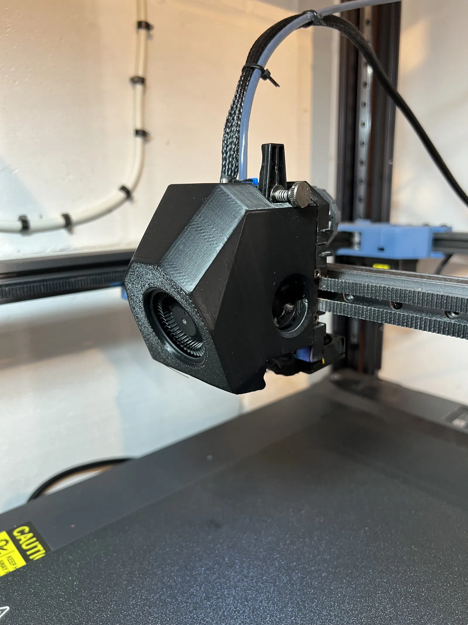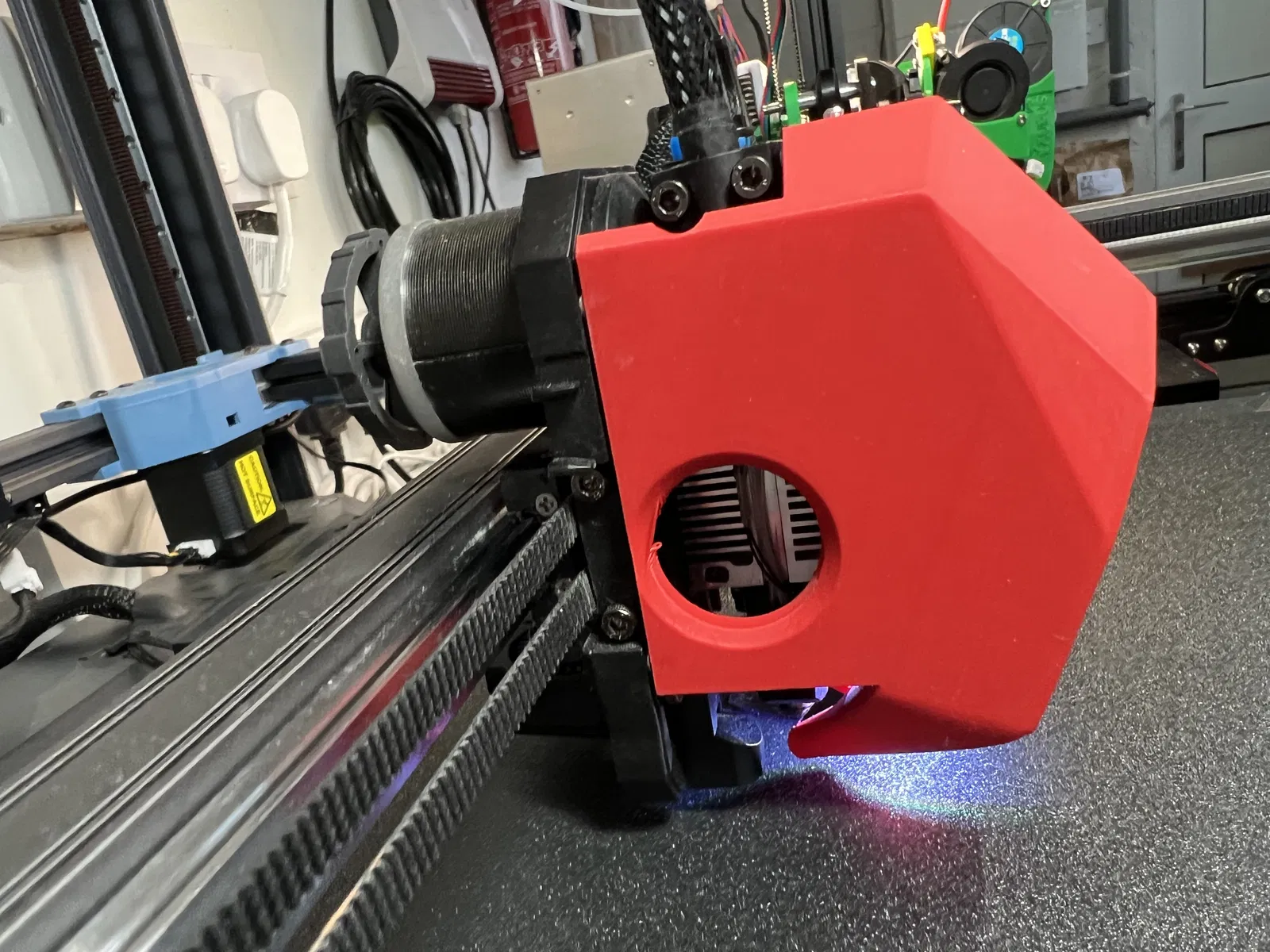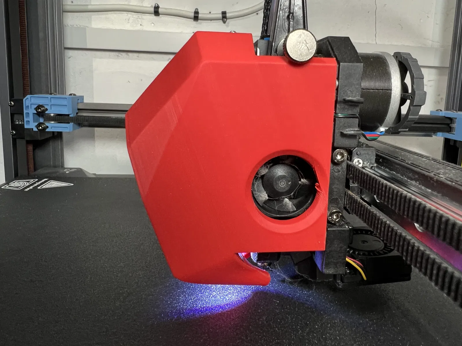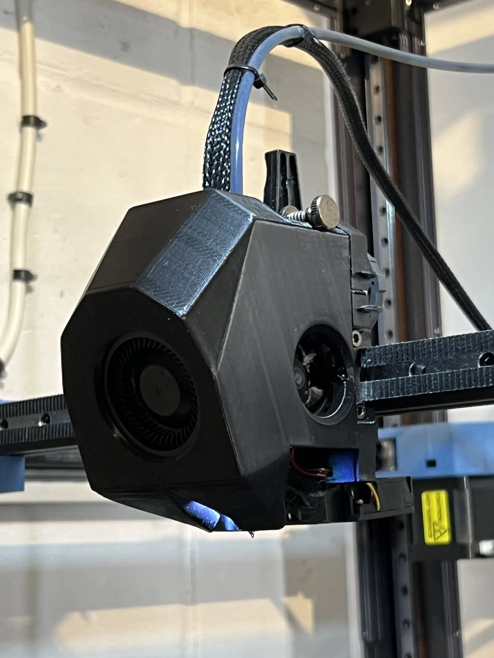 Mình vừa lắp enclosure kit cho SV08 và nhận ra cái shroud này thò ra nhiều quá, nên khi đầu in ở sát phía trước (lúc bắt đầu in) nó bị đụng vào cửa trước. Vì vậy chắc mình sẽ làm một thiết kế mới để tránh bị vậy.