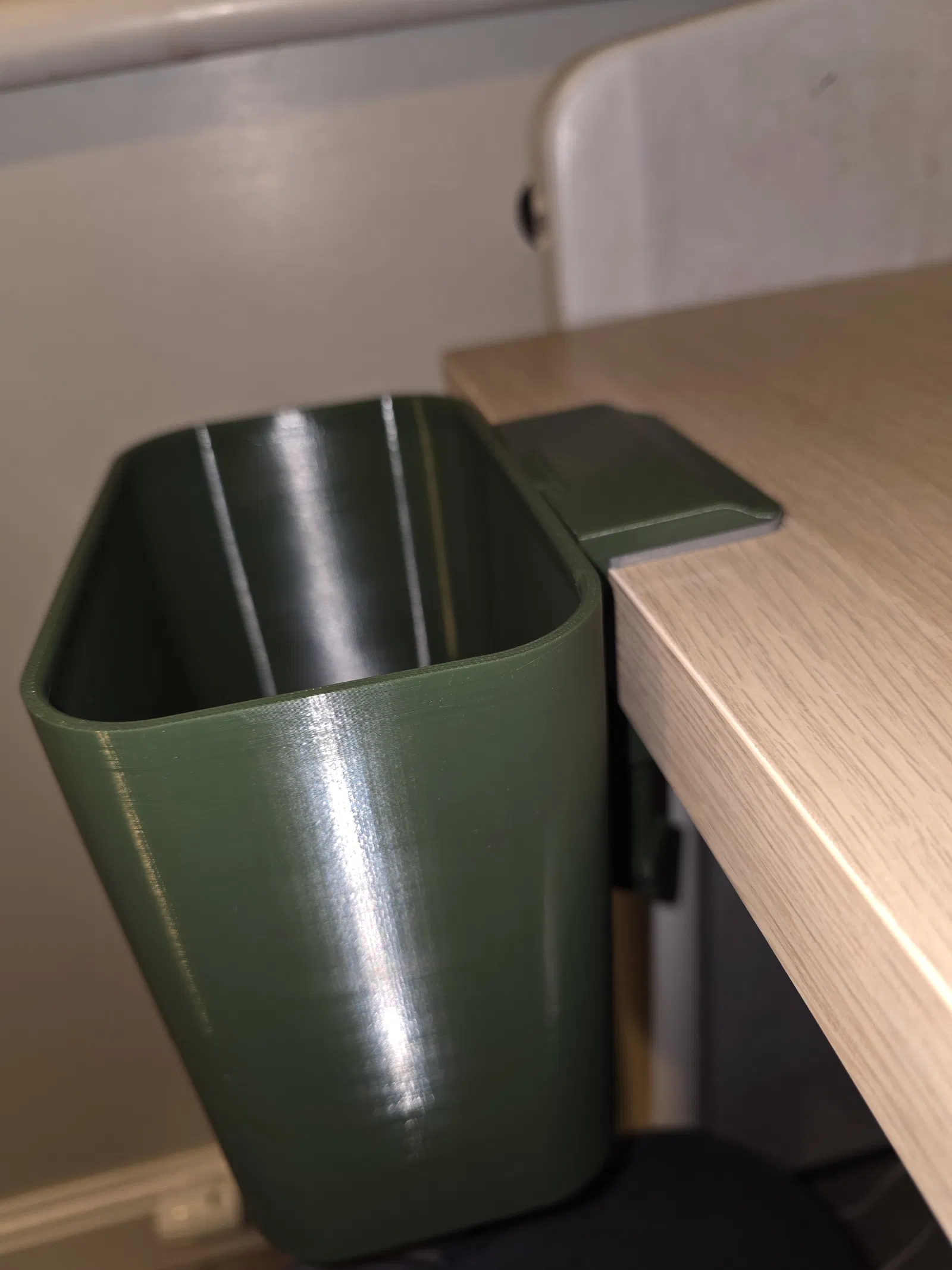 Thùng rác để bàn của DrKronos rất ổn, nhưng cái clamp kẹp không bám bàn mình được tốt lắm nên mình làm thêm một miếng grip bằng TPU. Giờ kẹp bám chắc hơn trên bàn rồi. Mình dùng keo dán contact cement để dán miếng grip vào clamp.