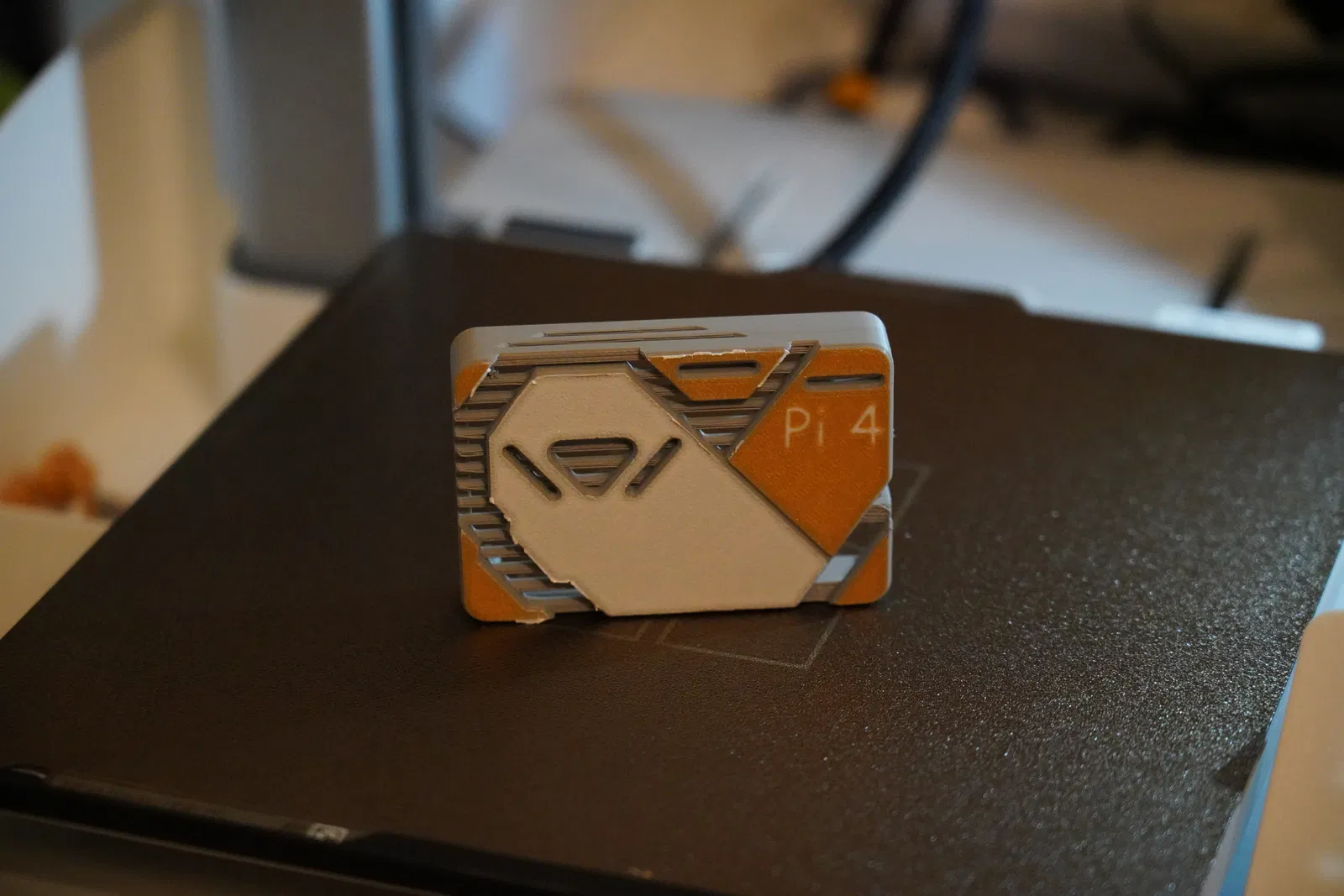 Mẫu vỏ Raspberry Pi 4 với họa tiết hình học chủ đề chữ V trên bề mặt. Thiết kế hiện cần in multicolor, khuyến nghị dùng purge tower. Nếu nhiều người quan tâm, sẽ có bản không cần multicolor và kèm file STEP.