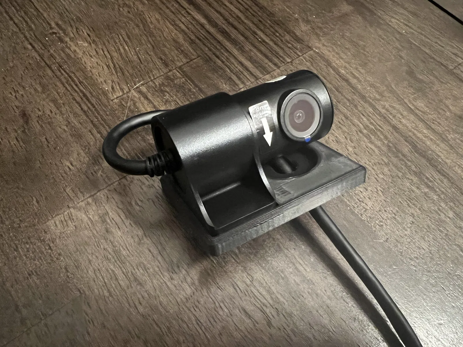Bản remix giá đỡ camera sau FitcamX: thêm phần recess giúp camera không bị xoay do lực căng dây, và bổ sung đường đi dây qua lỗ ngàm. Khuyến nghị dán băng keo mặt móc bên dưới để giữ chắc hơn.