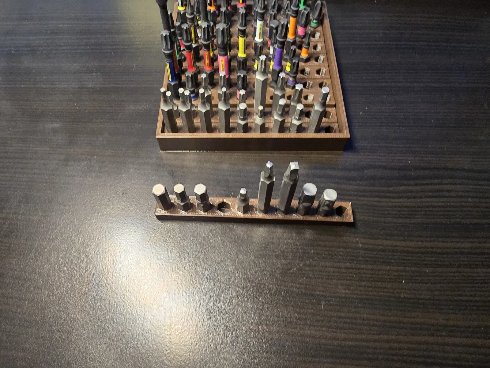 Mẫu này có 10 khay giữ bit, mỗi khay giữ được 10 bit, và tất cả đều lắp vừa vào phần đế.