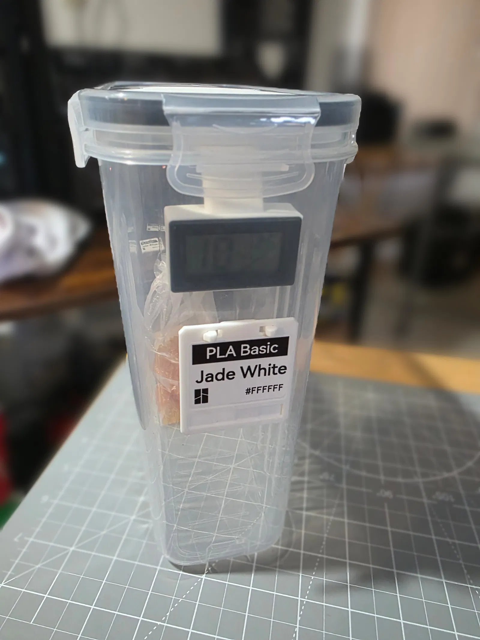 Bộ thẻ nhãn filament dạng thay thế, dùng nhãn 40x30 và gắn được nhiều nơi. Có 2 bản thẻ (test độ trong và bản cơ bản), mount tương thích 3M Command Strips. Kèm file .csv để in nhãn bằng thermal printer.