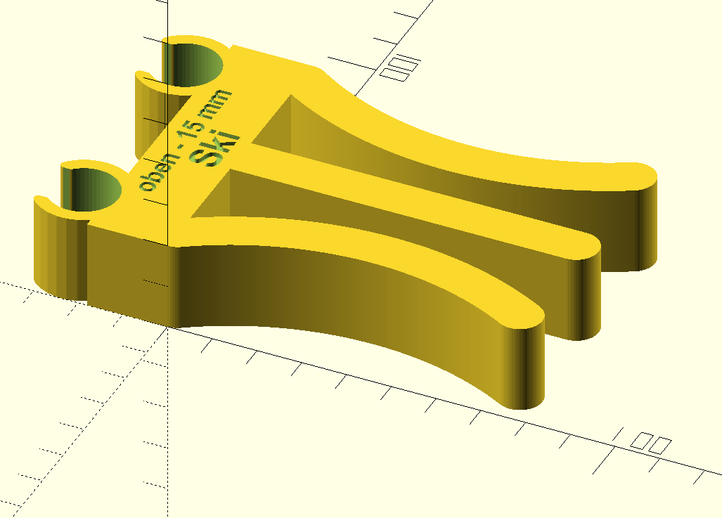 Bộ skihalter (ski holder) giúp kẹp và nối ski với skistock để dễ mang vác khi di chuyển. Có 4 kích thước theo đường kính gậy trẻ em/người lớn. Có thể chỉnh openSCAD, render F6 rồi export .3mf.