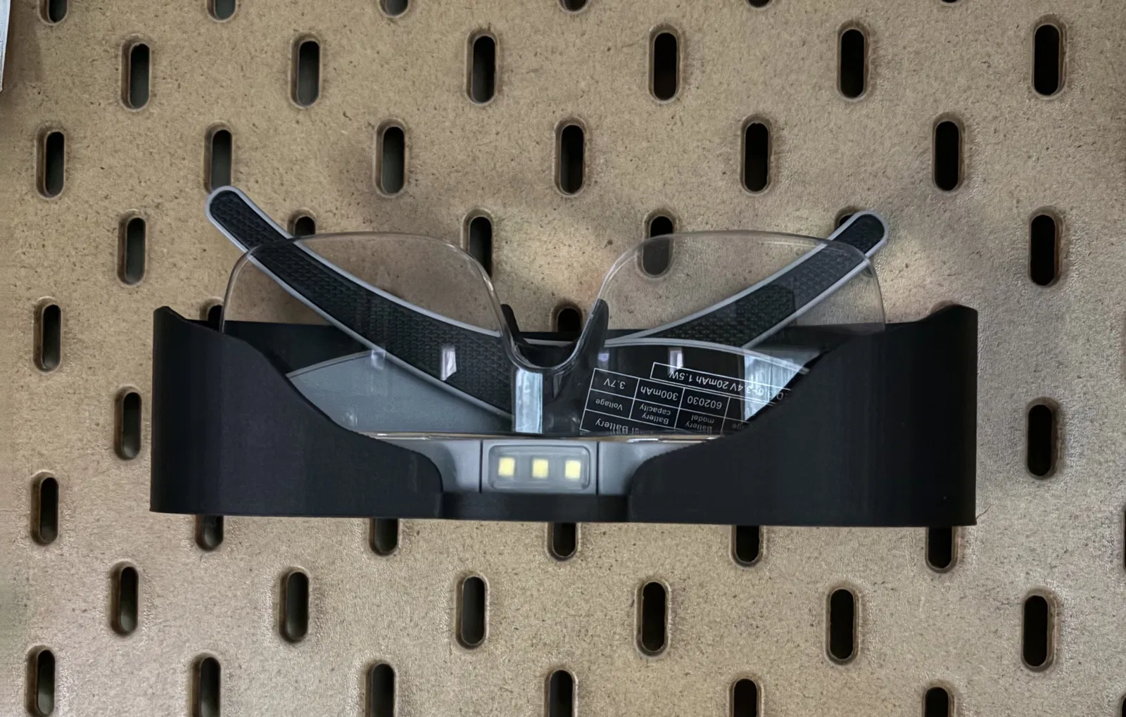Giá/khay gắn lên bảng Ikea Skadis để cất kính lúp Yoctosun có đèn LED gọn gàng, dễ lấy. Khi in nên bật supports để phần móc và bề mặt tựa chắc chắn hơn.