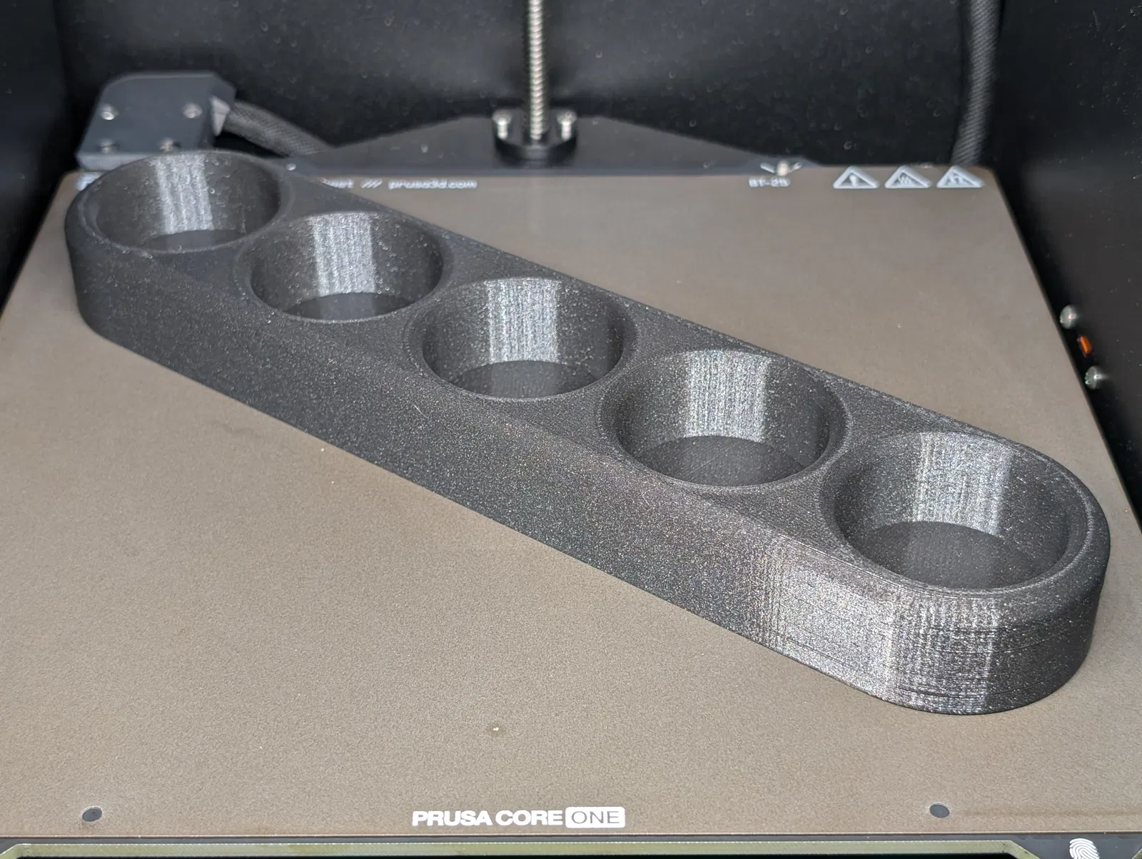 Một mẫu kệ/giá để chai vape juice dạng parametric! Mẫu này thiết kế chủ yếu cho chai 100ml và 120ml, nhưng bạn có thể dùng cho kích thước khác bằng cách chỉnh các tham số trong dự án Freecad.