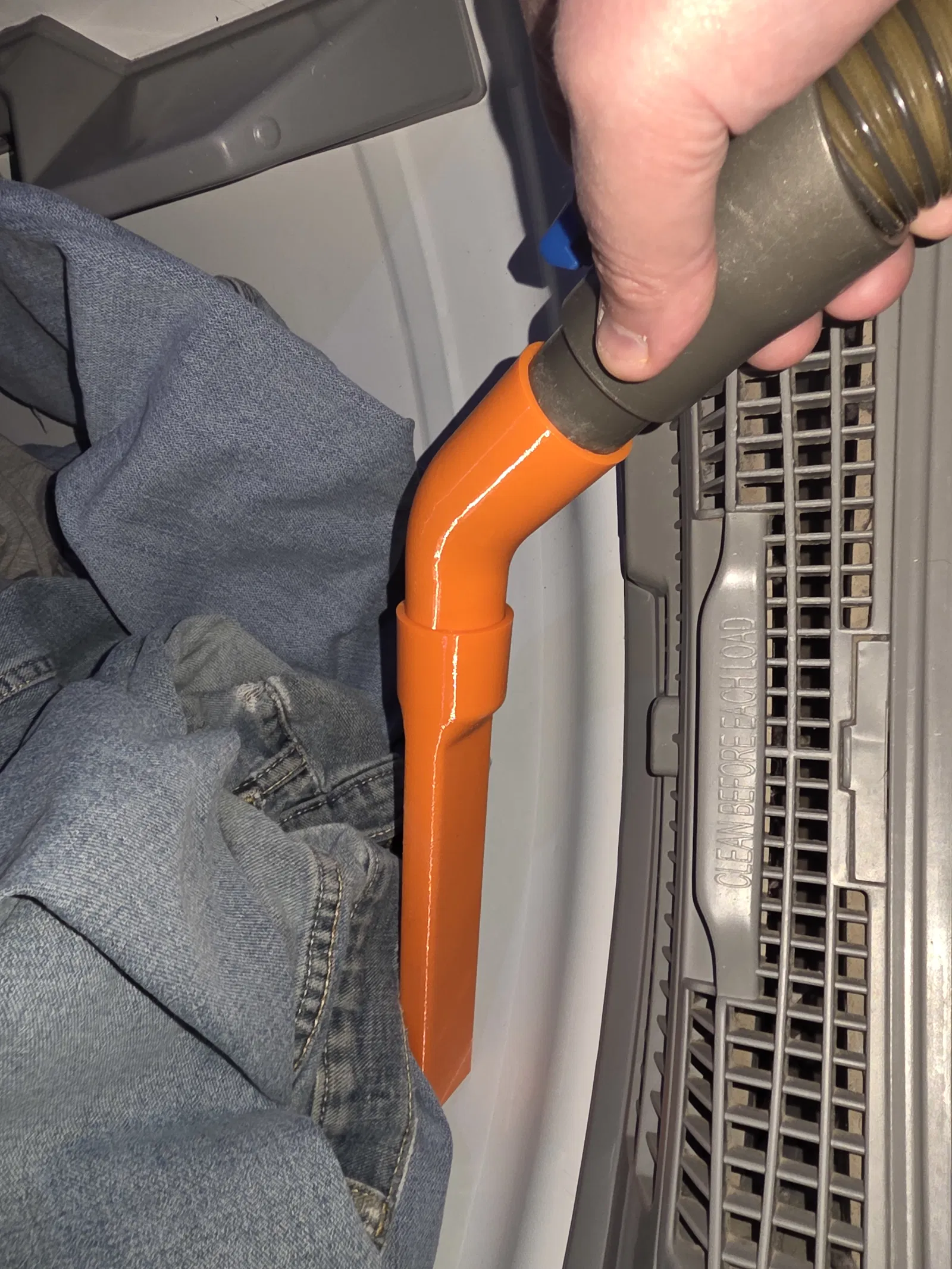 Mình thích PETG cho mấy món kiểu này, nhưng PCTG hoặc PLA+ hoặc ABS… chắc cũng được ha. Nó cũng giúp mình dọn mấy chỗ lặt vặt mà đỡ phải cúi sâu. Mình còn đem nó vệ sinh rãnh ray cửa lùa (sliding door track) nữa, kết quả cũng ngon. Mình thích tấm hình có quần áo trong máy sấy hơn!
