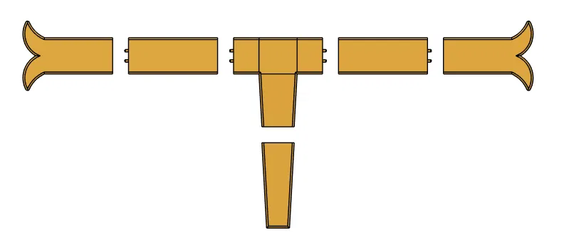 Phần hilt lấy GripNut làm tâm. Cây dowel dài sẽ đi xuyên qua GripNut, còn các dowel của hilt sẽ tỳ/áp vào cây dowel dài.