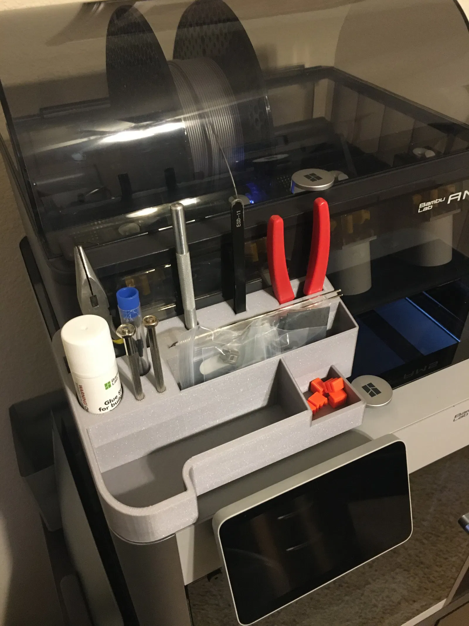 Một hộp lưu trữ công cụ nhỏ hơn được thiết kế để phù hợp với đầu của Bambu Carbon X1 với AMS