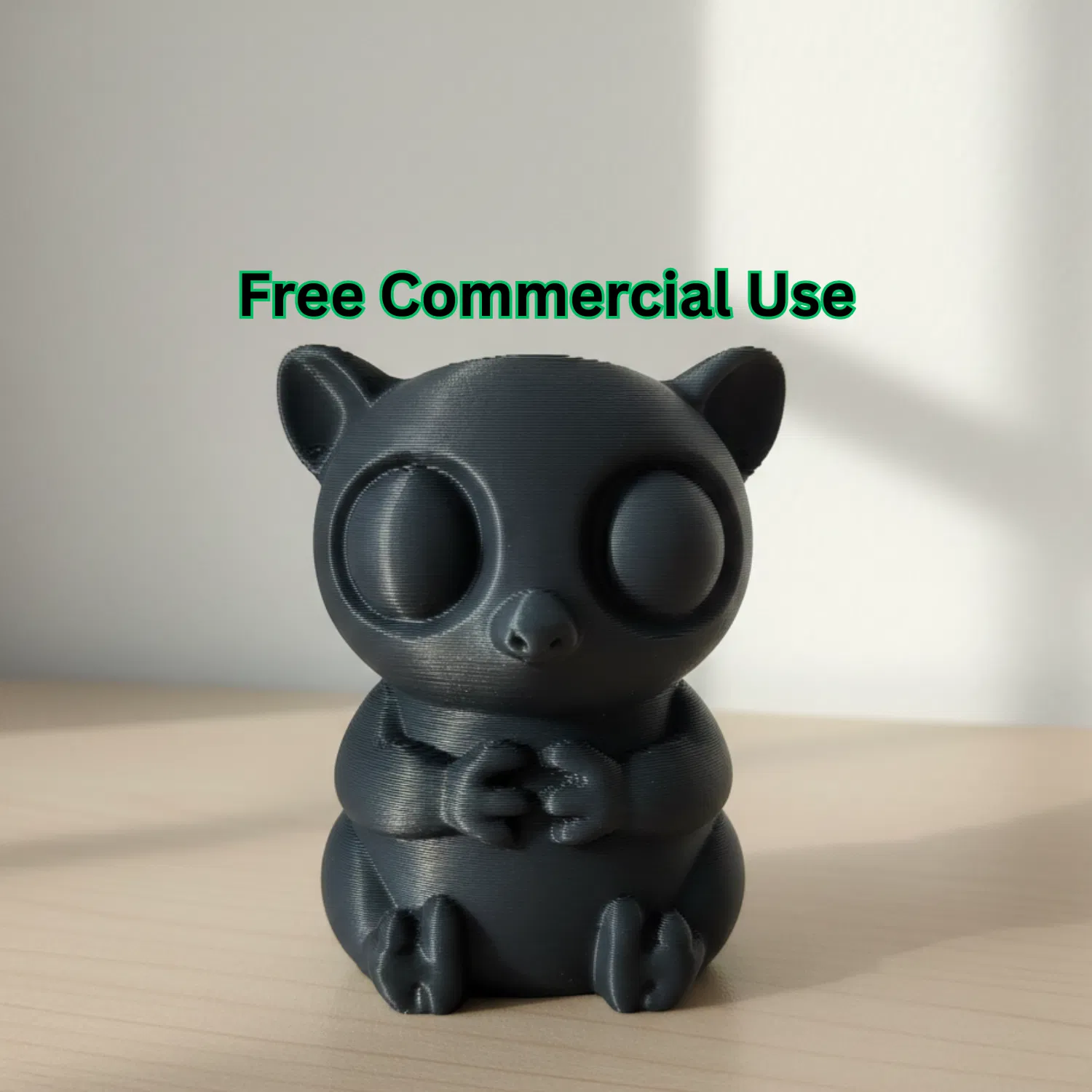 Mô hình aye-aye này có đôi mắt to quá cỡ và bàn tay được đơn giản hoá để in liền khối chắc chắn. Được thiết kế trông như một bản in FDM 3D thật, với vân layer line thấy rõ và bề mặt filament mờ.