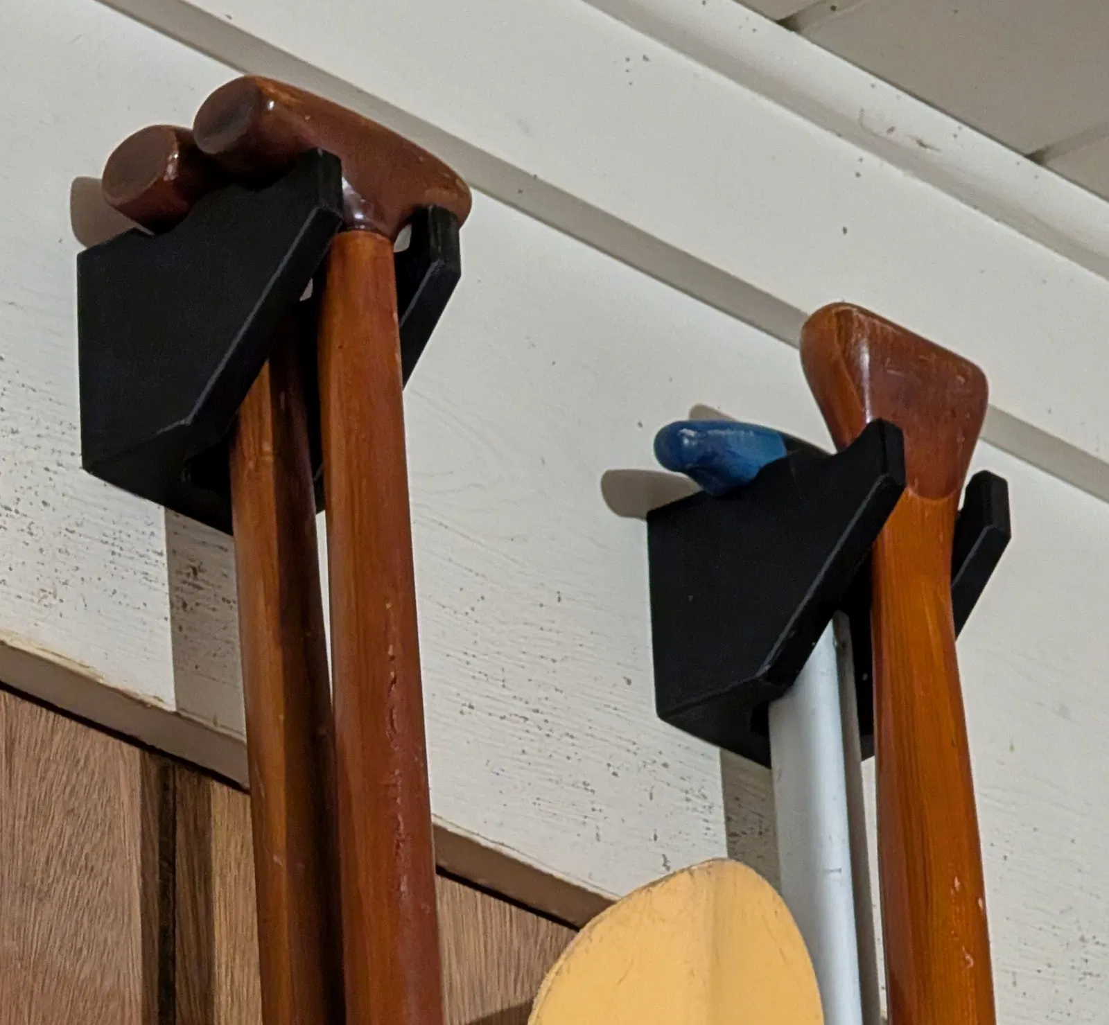 Giá treo giữ được 2 mái chèo canoe, tương thích cả tay cầm dạng T-grip và palm-grip. Khuyến nghị in với infill từ 25% trở lên; khi bắt vít lên tường thì vặn nhẹ tay để tránh nứt vỡ.