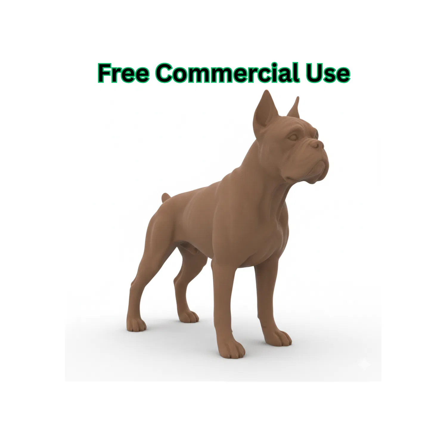 Tượng chó Boxer với thân hình cơ bắp và dáng đứng trung tính. Thiết kế dành cho in FDM một màu, dạng mô hình liền khối một mảnh, hình học được đơn giản hóa để dễ in hơn.