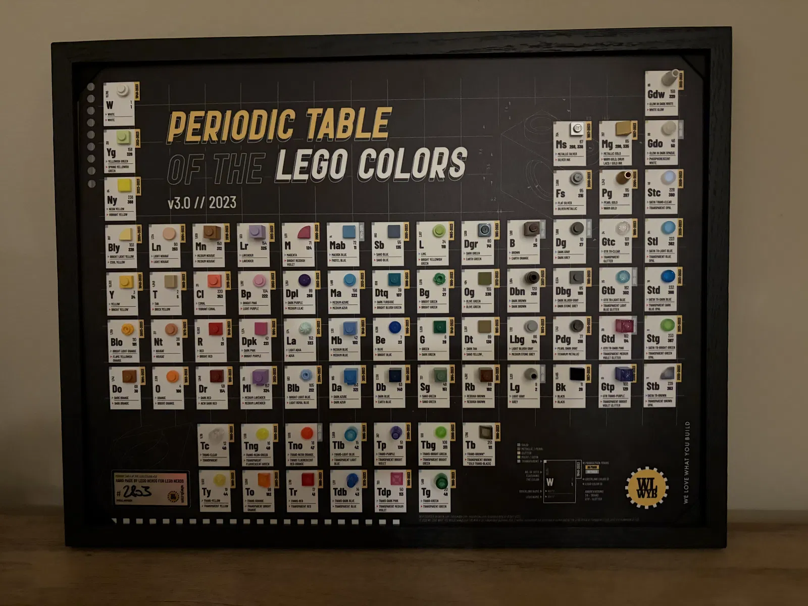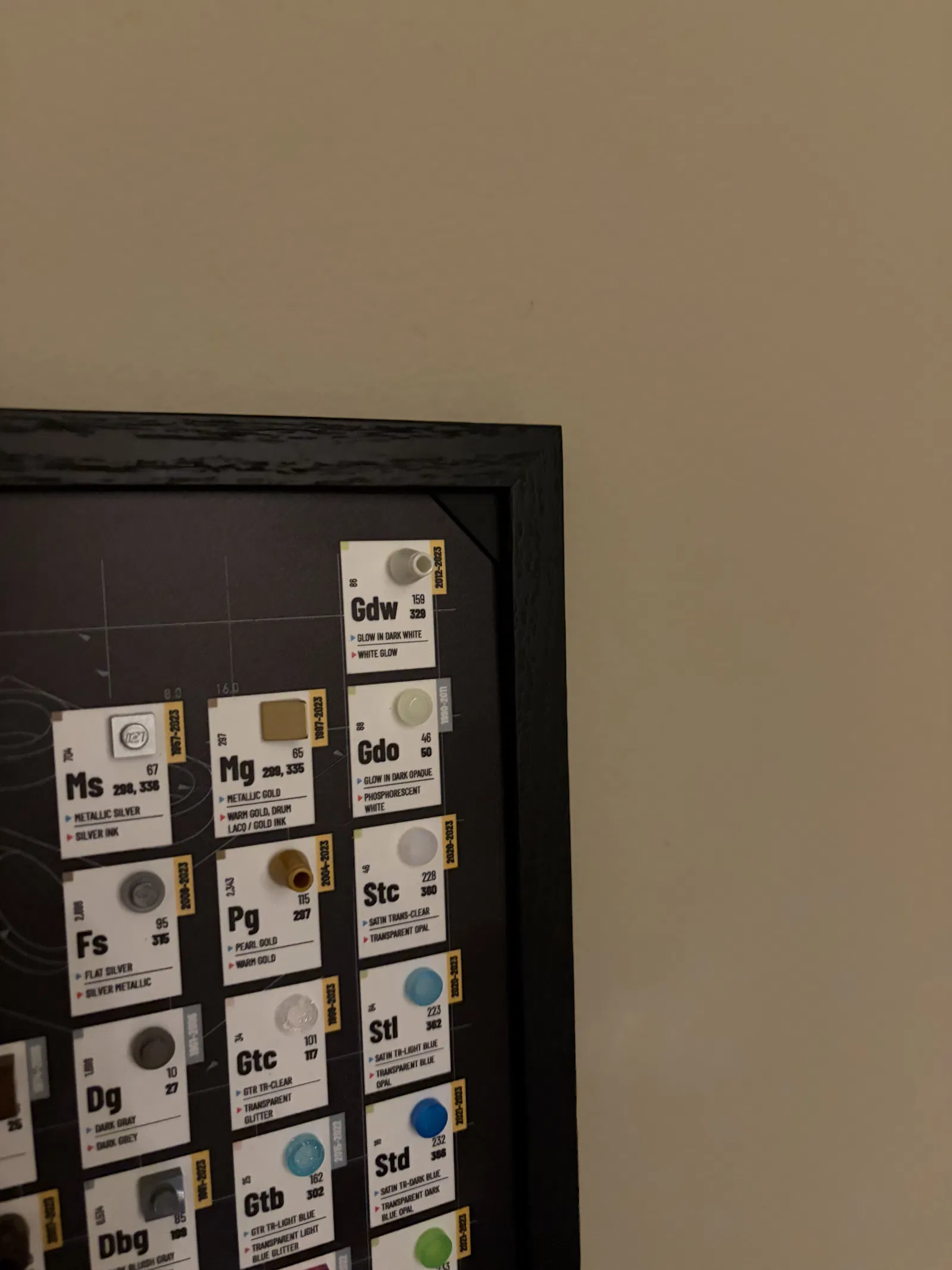 Mình làm cái spacer này cho một cái picture frame mình mua để lắp Lego Periodic Table of Colors của We Love What You Build. Mình không tìm được khung nào vừa đẹp với nó, trong khi mình lại thích cái khung này. Khung đi kèm một tấm acrylic, nhưng khi gắn các mảnh Lego vào thì tấm acrylic không còn vừa để tiếp tục lắp trong khung nữa. Mình bỏ tấm acrylic ra khỏi khung, nhưng vẫn dùng tấm backing để giữ mọi thứ cố định. Bạn có thể xem khung ở đây: