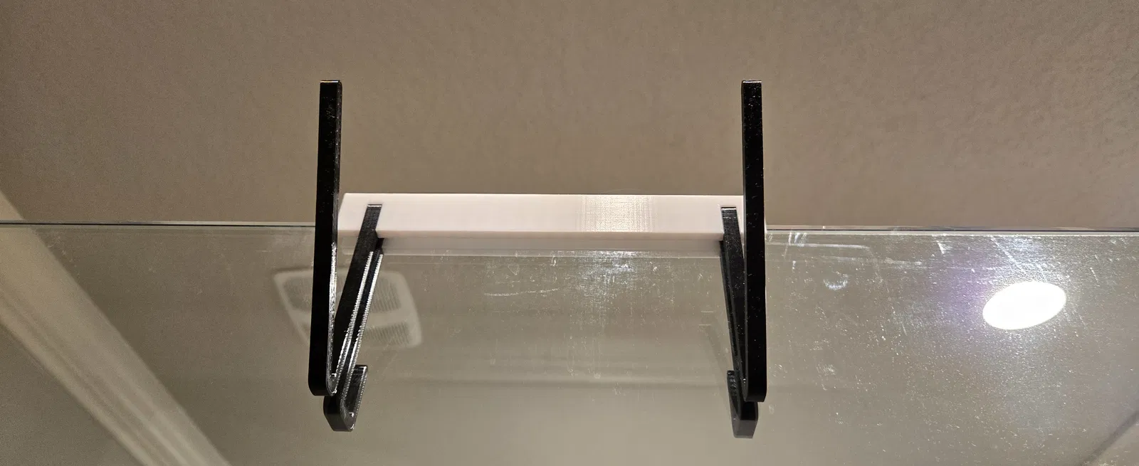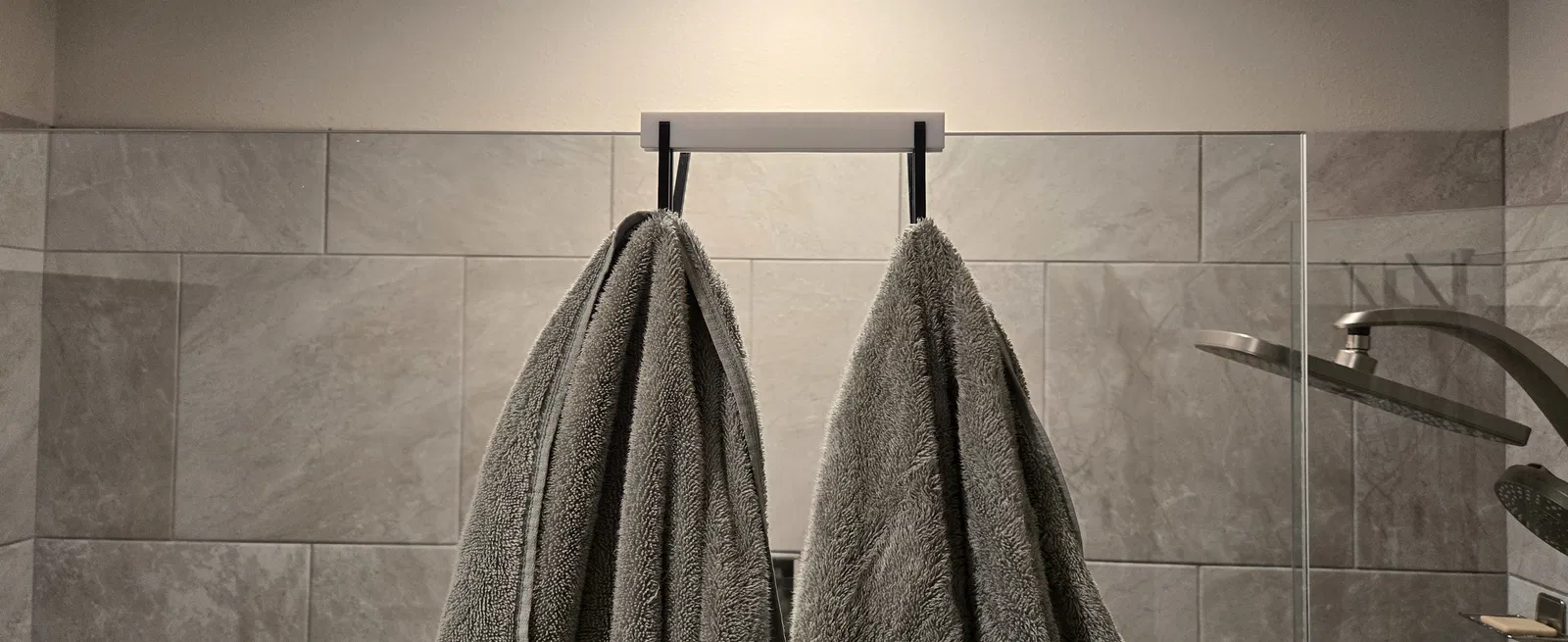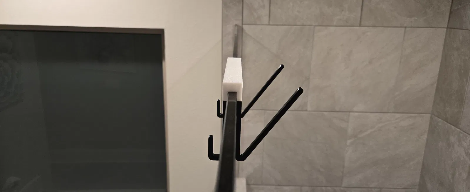 Mẫu móc treo điện thoại dành cho vách kính phòng tắm dày 10mm. Khuyến nghị không dùng PLA; tác giả đã in bằng PCTG Pro để độ bền và khả năng chịu ẩm/nhiệt tốt hơn.