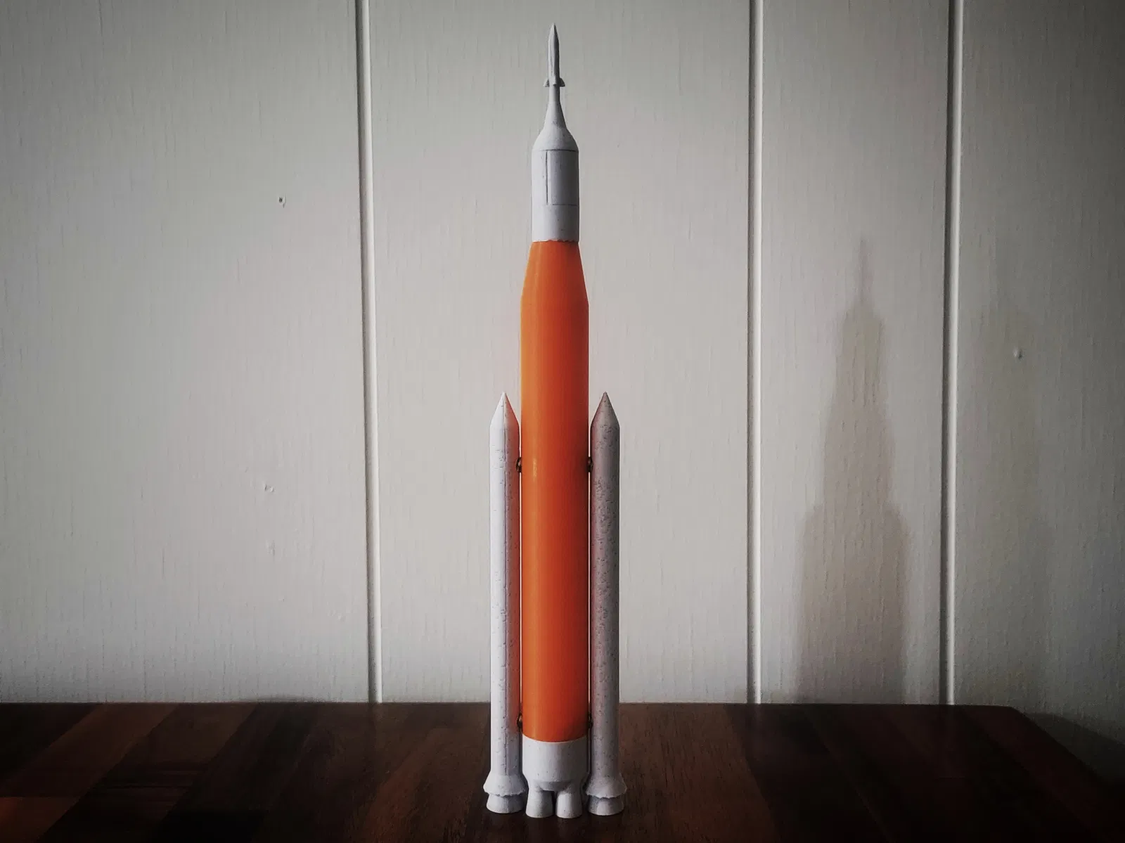 Mô hình Artemis II đơn giản hoá, dùng nam châm để minh hoạ từng giai đoạn phóng. Cao 30cm, tách phần để dễ in và giảm support. Dùng nam châm tròn 6×2mm (24–28 viên) và nối bằng filament 1.75mm.