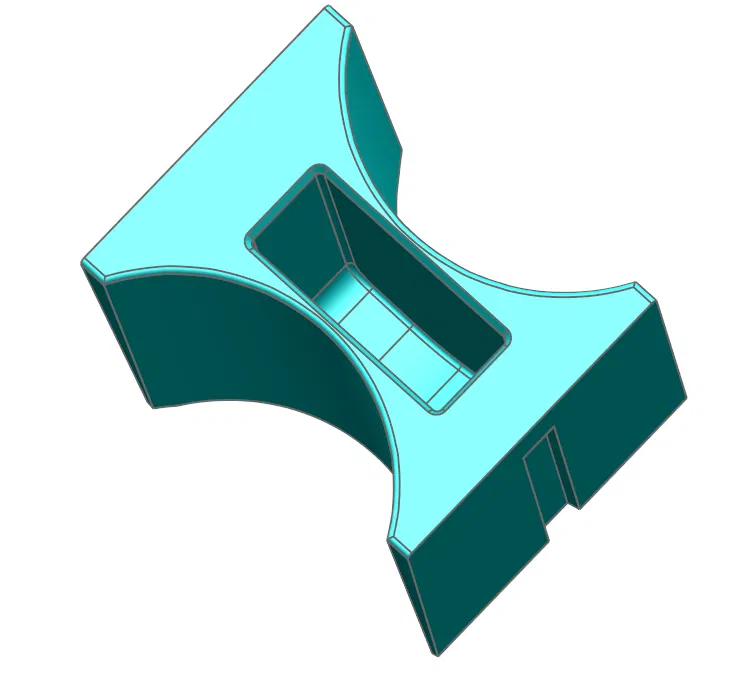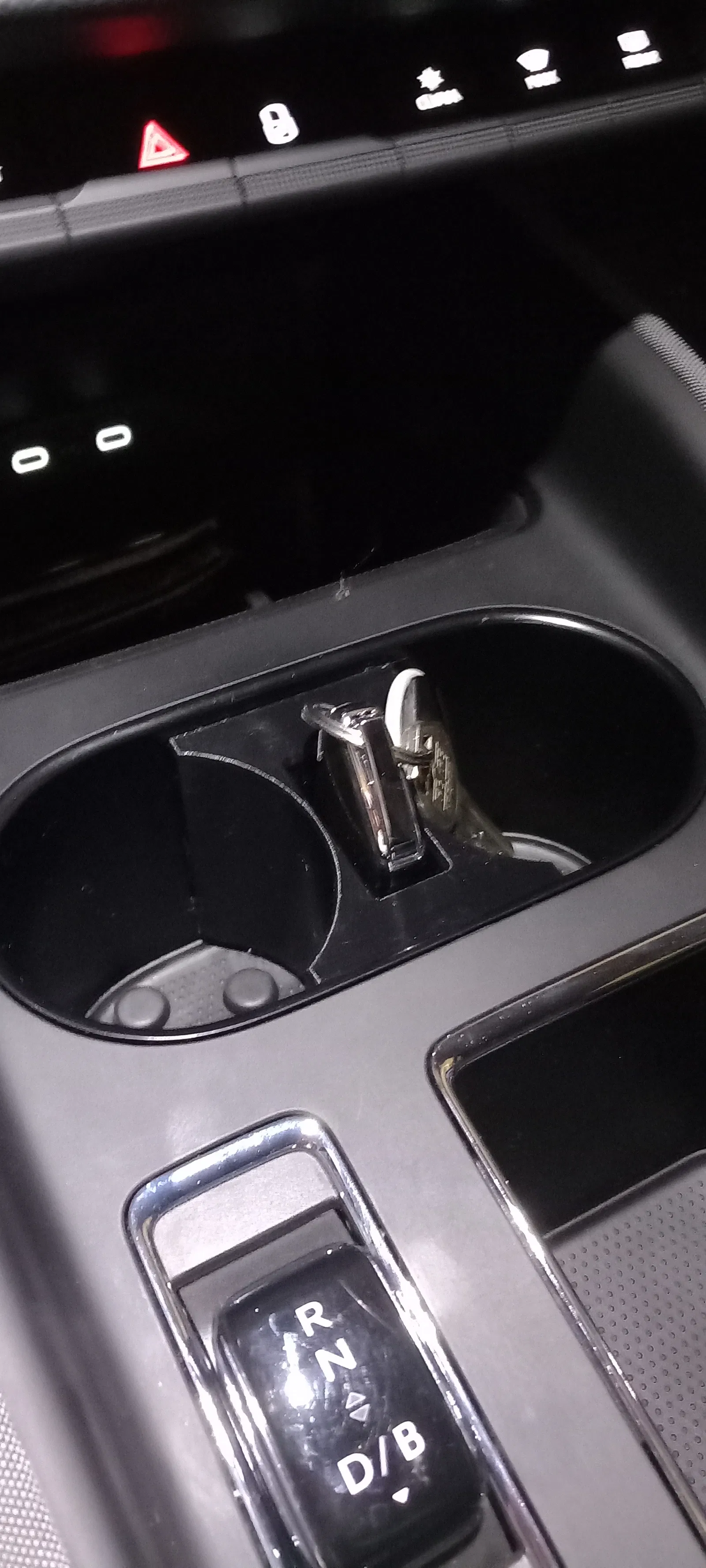 Phần giữa của khay để đồ/uống cho Skoda Enyaq, có rãnh để đặt chìa khóa xe. Mẫu được thiết kế để in nghiêng không cần support, giúp in gọn và dễ hoàn thiện sau khi in.