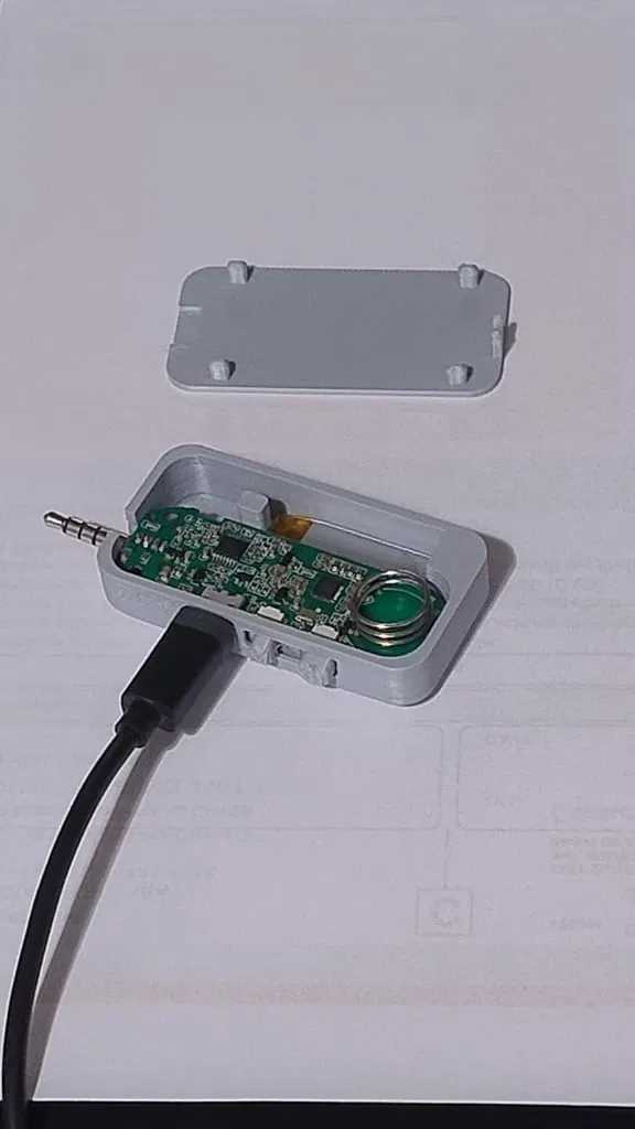 Micro cũ cần thay pin nhưng khó tìm loại pin đúng hình dáng, nên mình thiết kế hộp micro mới cho pin vuông. File STL không có chữ sẵn; có thể dùng font ký hiệu nguồn từ link đính kèm.