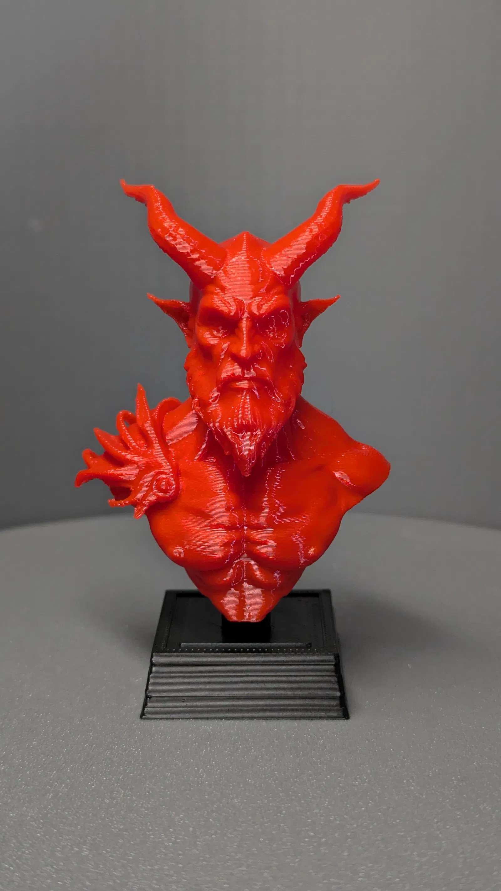 Tượng bust Demon Lord kèm bệ, được tạo bằng Tripo3D (text to model), dọn mesh trong Meshmixer và thêm phần bệ.