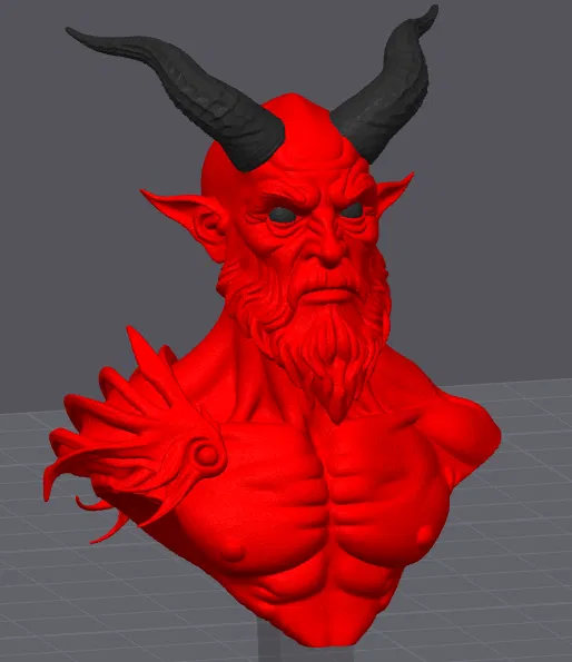 Mẫu bust Demon Lord kích thước 70mm kèm bệ. Model được tạo bằng Tripo3D (text to model), làm sạch trong Meshmixer và thêm base. Print profile có bệ tách rời, bản monocolor và multicolor; nên scale up hơn là scale down.
