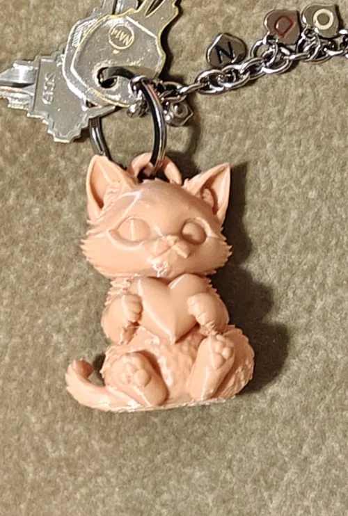 Mẫu móc khóa hình mèo ôm trái tim siêu dễ thương, hợp làm quà tặng Valentine hoặc dùng hằng ngày. Thiết kế nhỏ gọn, tiện in 3D và gắn cùng chùm chìa khóa.