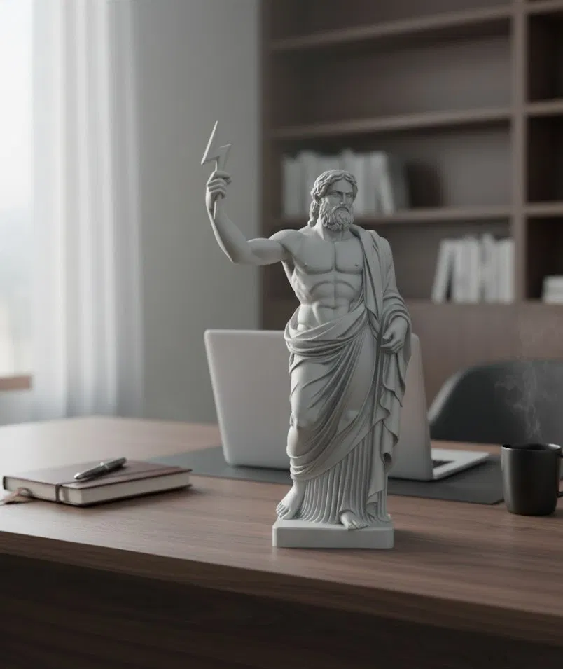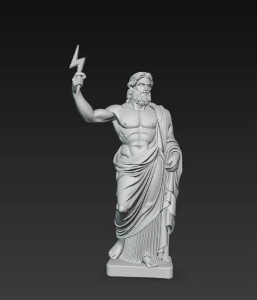 Mẫu tượng thần Zeus với tia sét trên tay, phù hợp để in 3D làm figurine trang trí hoặc trưng bày. Thiết kế theo phong cách tượng thần thoại, nổi bật với dáng đứng uy nghi và chi tiết tia sét.