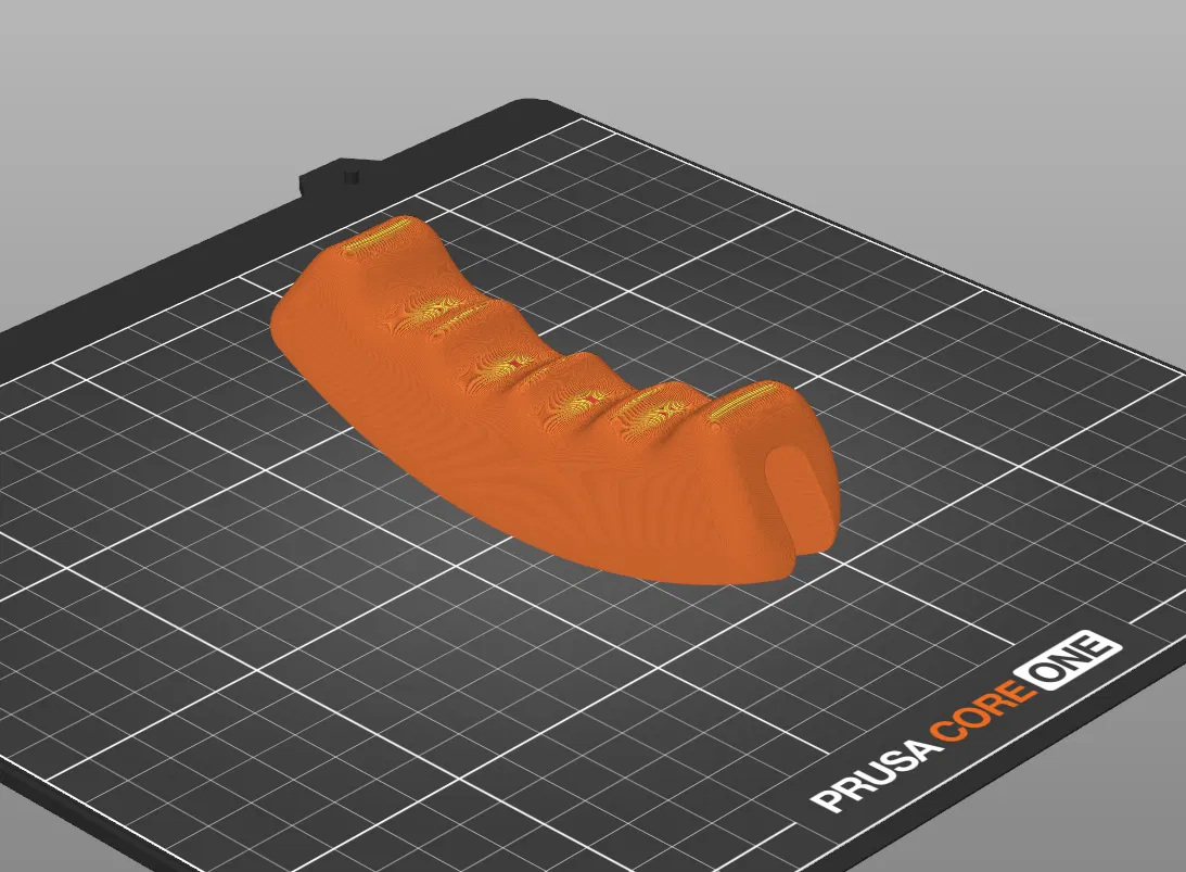 Tay cầm công thái học giúp xách mọi loại túi mua sắm êm tay, giảm đau khi mang nặng. Khuyến nghị in đúng hướng, layer 0,1 mm cho bề mặt đẹp, dùng brim rồi cắt bỏ, không cần infill.