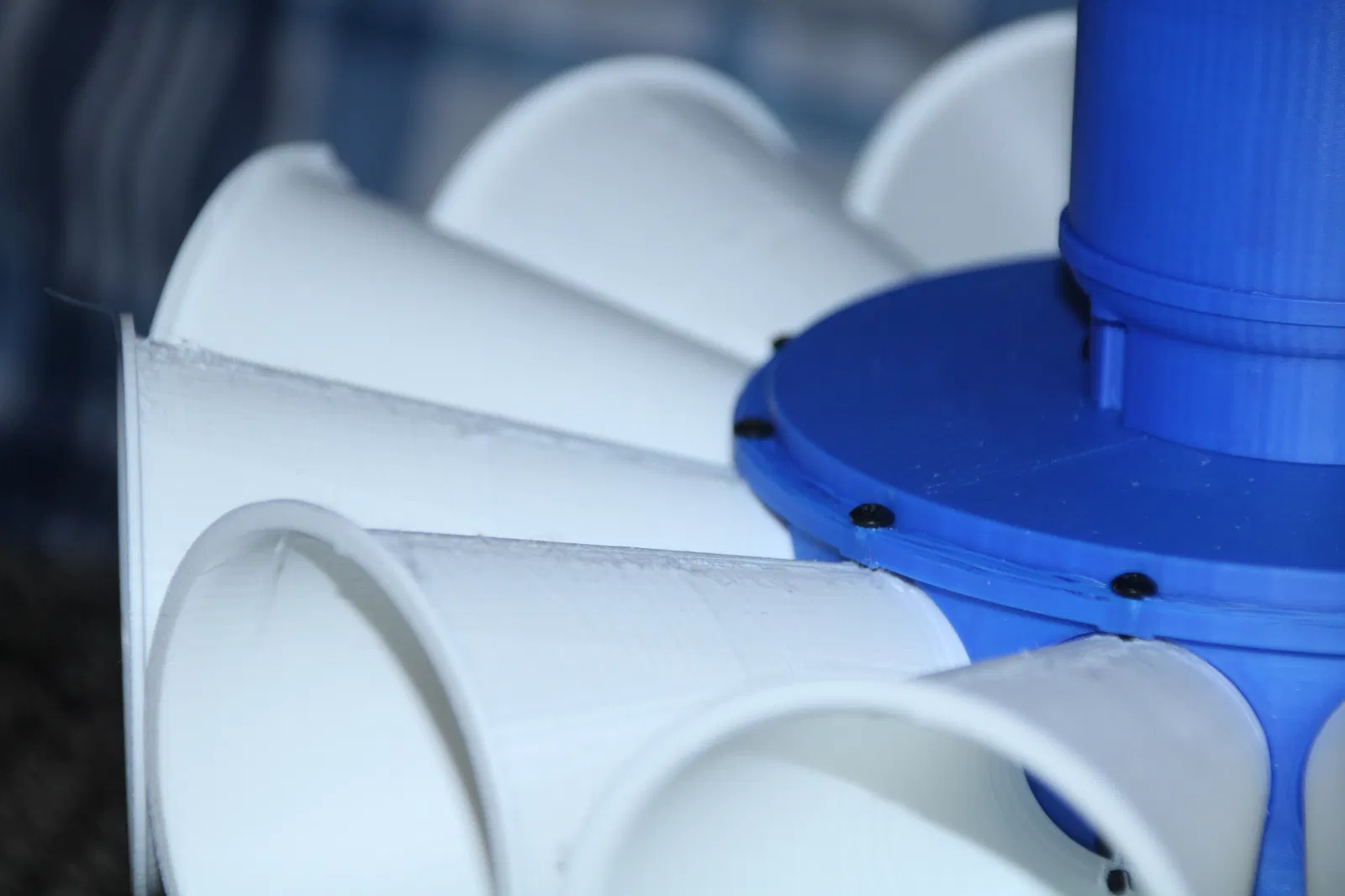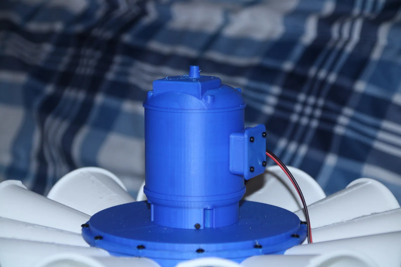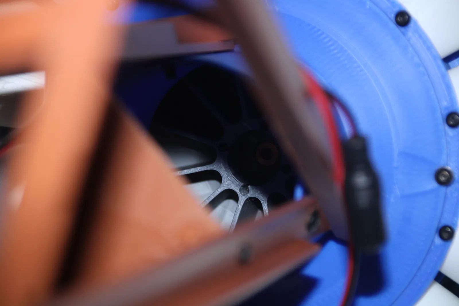 Có một hub để gắn impeller vào motor. Coupler 2.3 đến 4 mm sẽ gắn lên motor 390. Rotor hub là dạng press fit lên coupler 2.3 đến 4mm. Trên hub có các lỗ để canh thẳng hàng với các set screw trên coupler. Vặn lùi (back out) các vít ở phía đầu 4mm để khóa hub vào coupler. Impeller lắp chụp lên rotor hub. Rotator drive hub lắp vào phía intake của impeller. Ốc M3 sẽ xuyên qua cả hai hub và impeller để giữ toàn bộ cụm lại với nhau. Nếu bạn làm hỏng hub theo bất kỳ cách nào, bạn có thể in lại hub mà không cần làm lại toàn bộ rotor. Bản thân impeller có các lỗ quanh chu vi để có thể dùng ốc M2 cân bằng (balancing) nếu cần.