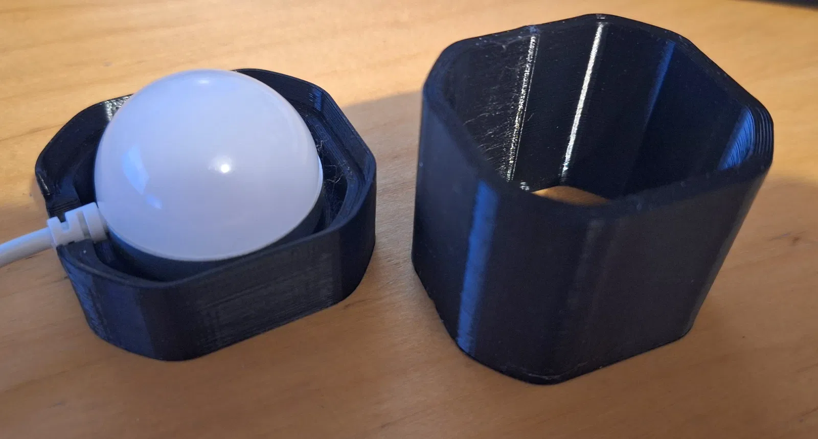 Phần chụp (shroud) chỉ cần ấn là vào đúng vị trí trên phần đế. Nếu cần bạn có thể dùng keo superglue để dán cố định. Thiết kế chia 2 phần để tránh phải dùng supports.