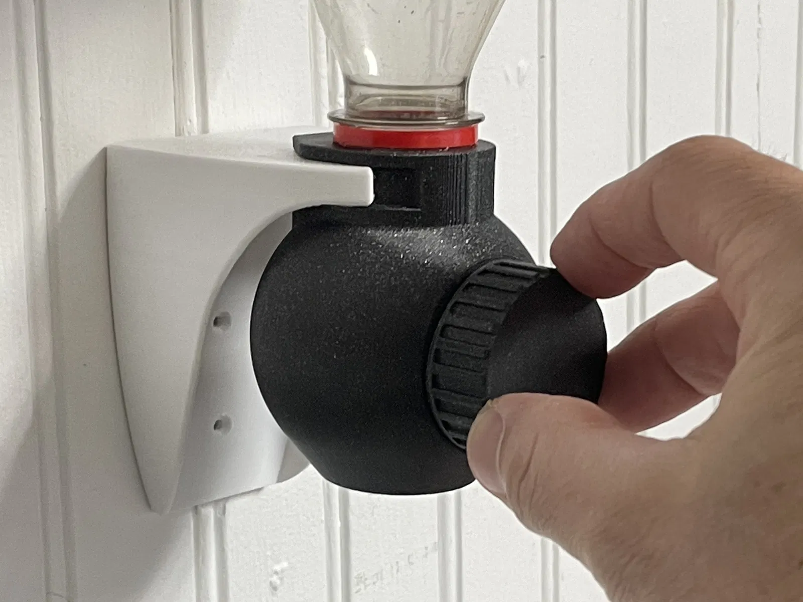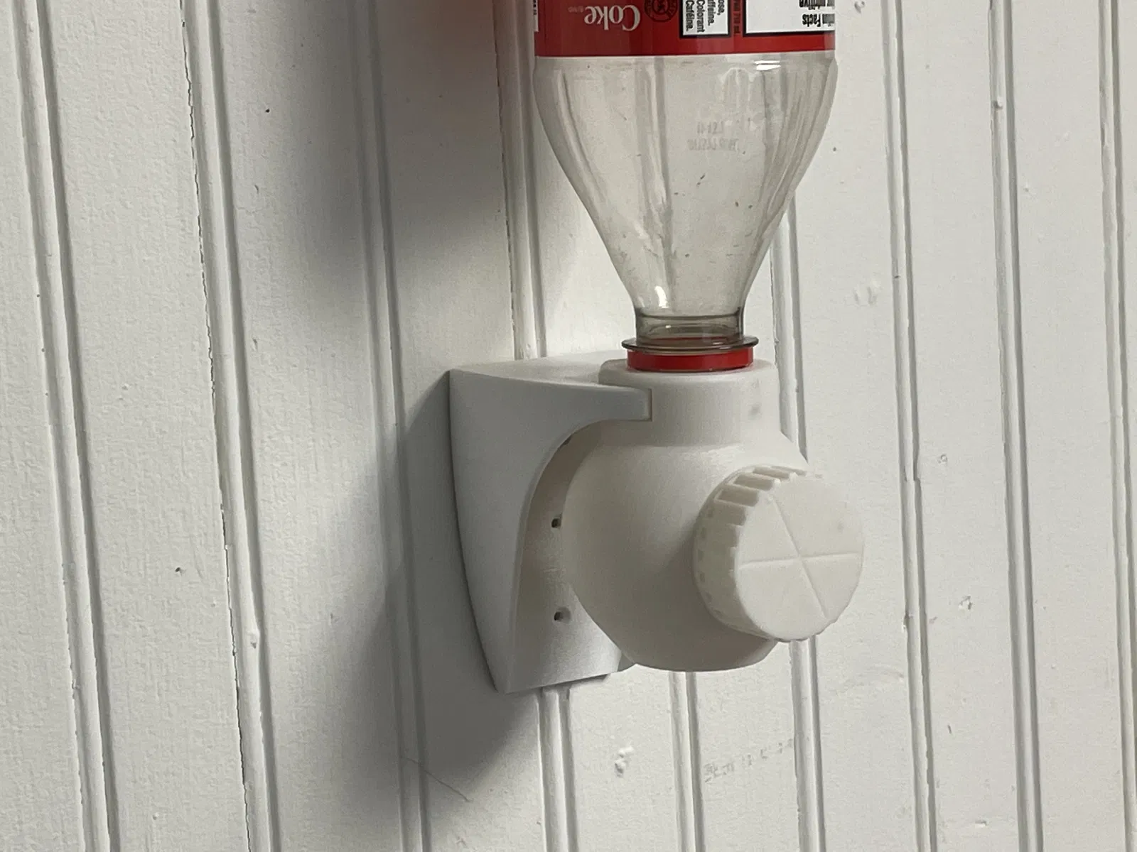 Mẫu “Dry Food Carousel Dispenser - Print in Place” giống máy nhả ngũ cốc buffet khách sạn, dùng chai PET làm bình chứa. Vặn núm để nhả đường, cà phê, trà, gia vị hoặc bột theo phần định lượng.