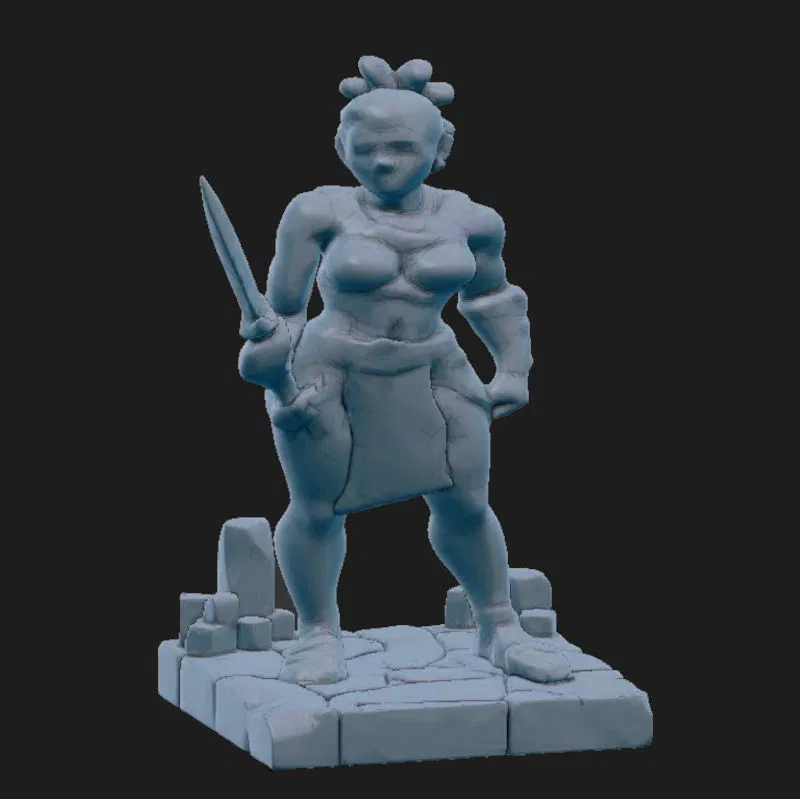 Mẫu mini TTRPG nữ chiến binh Inca trẻ, in FDM nhanh và không cần support. Gợi ý: nozzle 0,4/layer 0,2 để in nhanh; hoặc nozzle 0,2/layer 0,15 cho bản in khoảng 45 phút và chi tiết đẹp.