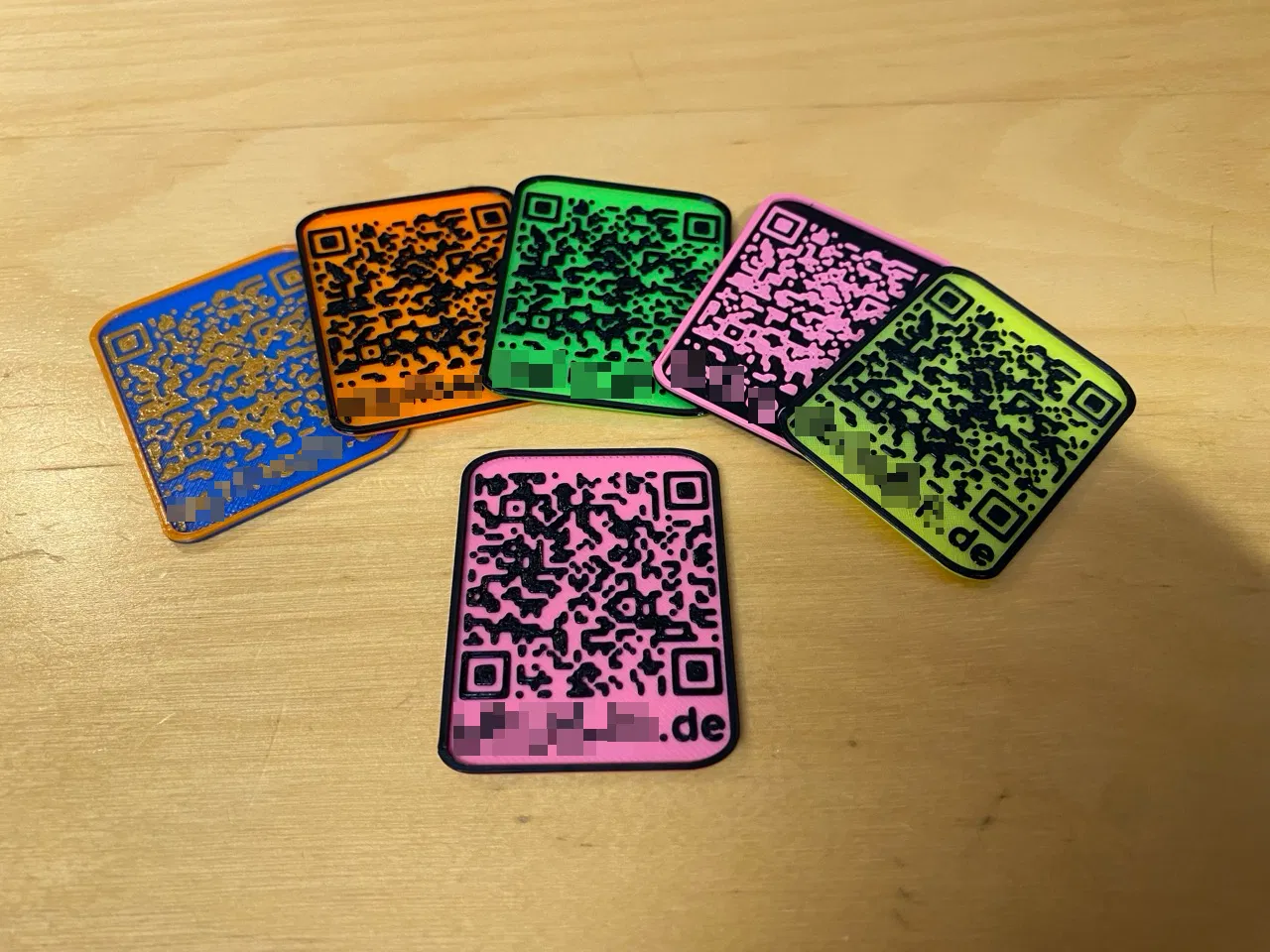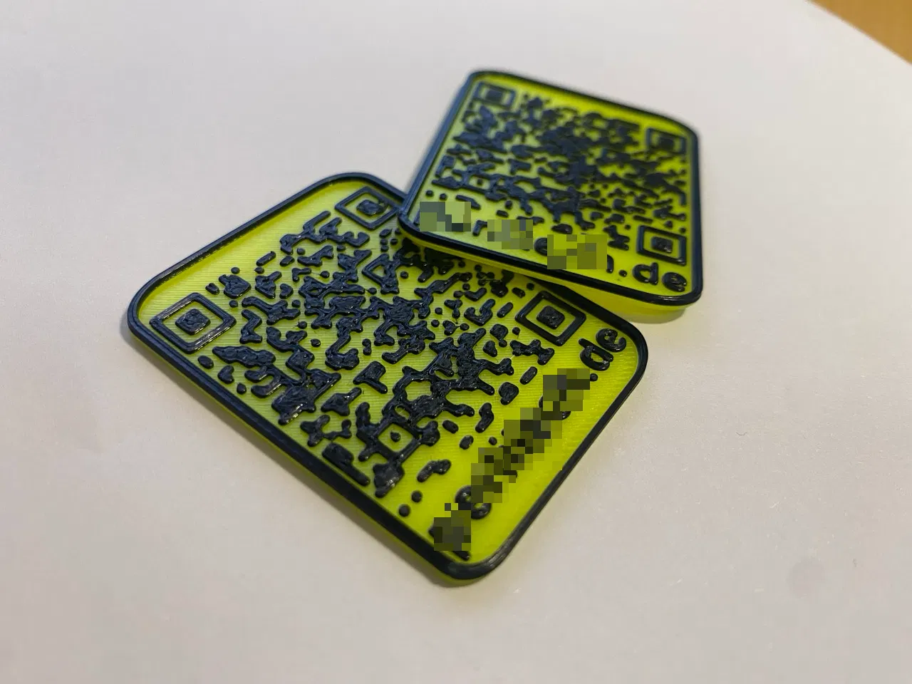 Token QR code in 3D nhiều màu, cầm tay chắc chắn và quét cực nhạy. Phù hợp làm giveaway tối giản hoặc “business card” độc đáo cho sự kiện/branding. Tạo QR online, đổi sang SVG rồi import vào PrusaSlicer.